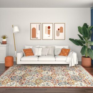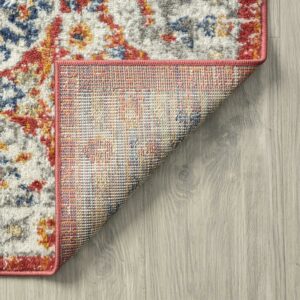 This colorful Boho style area rug offers comfort and elegance. The colorful Oriental pattern adds energy and feminine touch to any room. Natural stain-resistance and no additional treatments makes it kid and pet friendly. Transitional 5×7 Area Rug (5’3” x 7’3”) Oriental Multi, Light Red Living Room Easy to Clean. Good fit for living room, dining room, bedroom. Vacuum on medium pile setting to remove debris taking care to avoid fraying the edges. Spot clean with water, do not bleach. Rotate periodically to extend the life of your investment.
