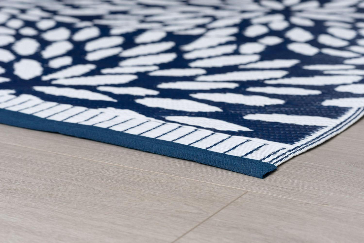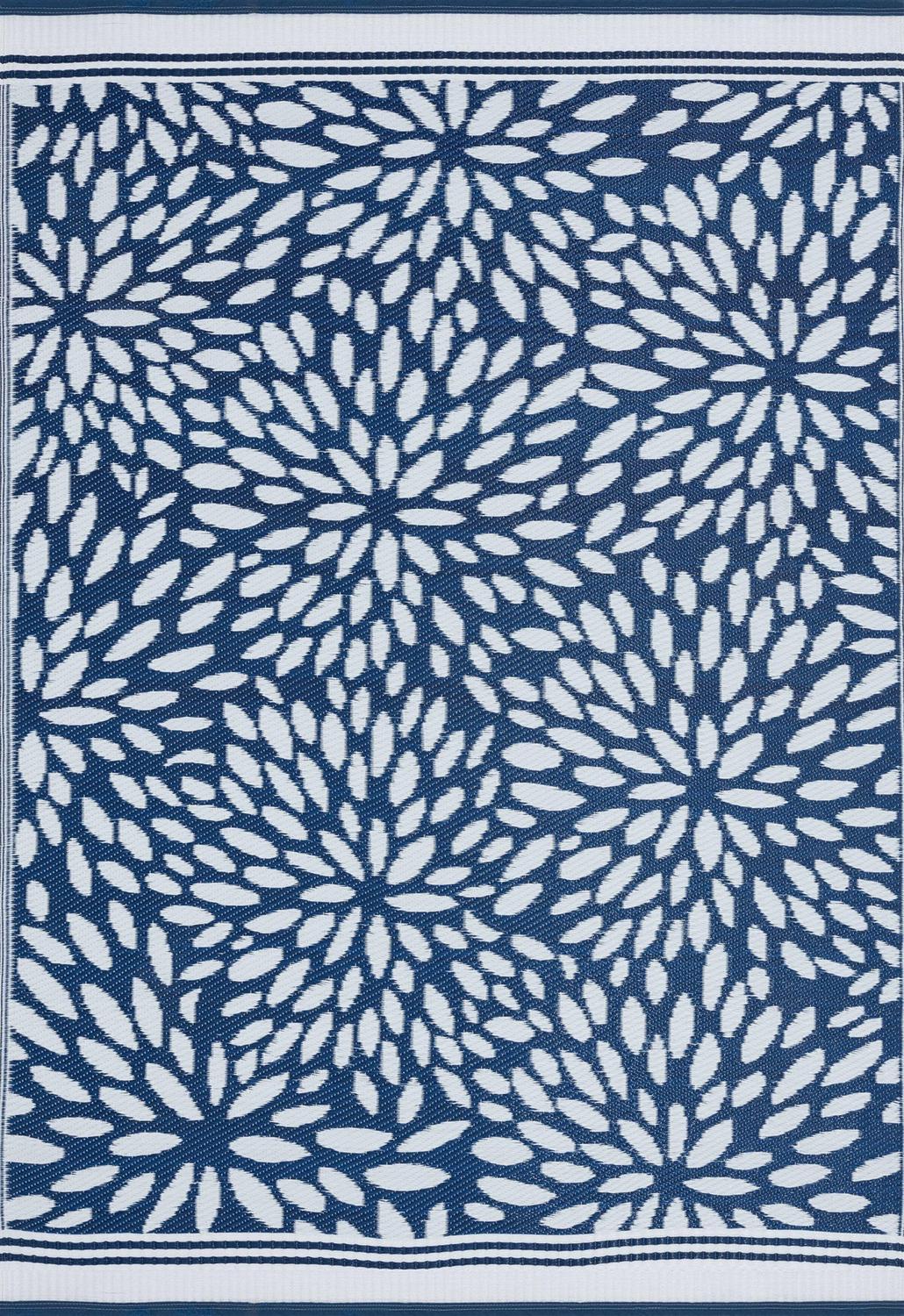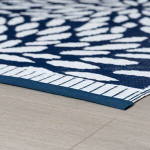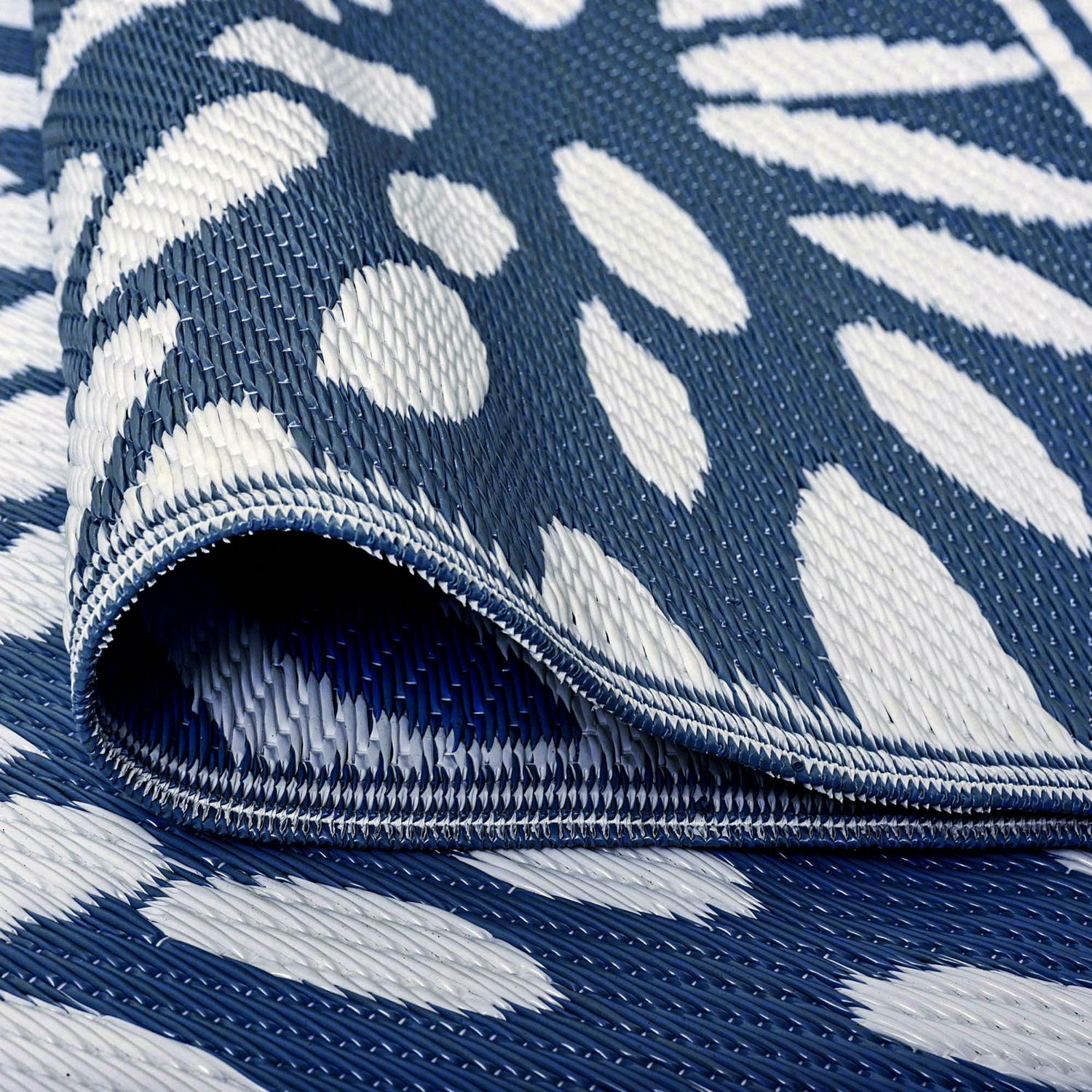 – 5×7 Waterproof, Reversible Plastic Straw Outdoor Rugs for Patios | Also for Camping, RV, Deck, Porch, Balcony, Camp, Patio | Navy, Floral | Size: 5′ x 6’11”