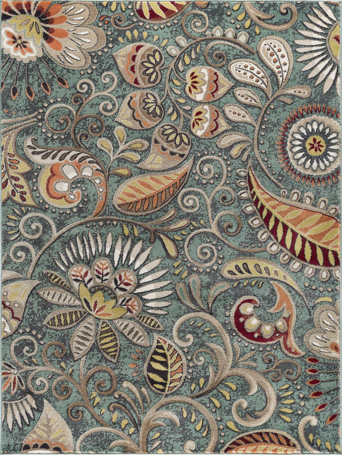 This filigree floral design indoor area rug has a playful boho style that works well with popular farmhouse decor. Quality construction and stain-resistance offer a warm and cozy setting for your living room, dining area, bedroom, or family room. Transitional 5×8 Area Rug (5’3” x 7’3”) Floral Seafoam, Beige Living Room Easy to Clean. Good fit for living room, dining room, bedroom. Vacuum on medium pile setting to remove debris taking care to avoid fraying the edges. Spot clean with water, do not bleach. Rotate periodically to extend the life of your investment.