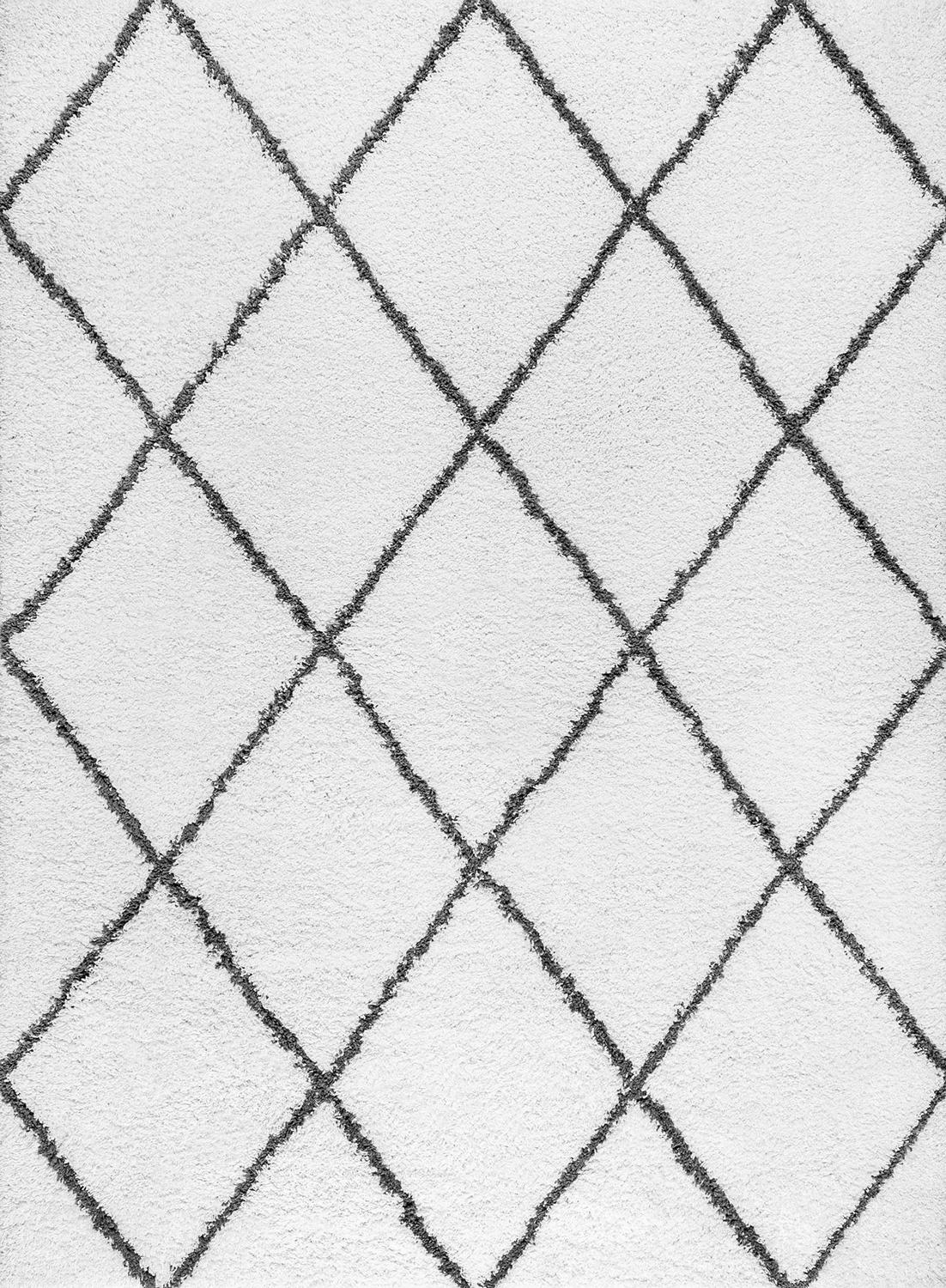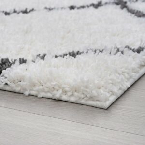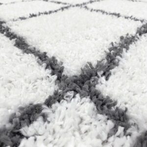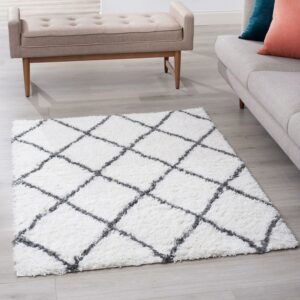 The simple diamond pattern of this shag area rug gives a subtle elegance that enhances any style of decor. Find luxury underfoot with soft high pile meant to indulge. Shake to remove most debris. Vacuum on high pile setting taking care to avoid fraying, especially at the edges. Rotate periodically to extend the life of your investment. Spot clean with water when necessary. Contemporary 5×8 Area Rug Shag Thick (5’3” x 7’3”) Diamond White, Gray Living Room Easy to Clean. Good fit for living room, dining room, bedroom. Vacuum on high pile setting to remove debris taking care to avoid fraying the edges. Spot clean with water, do not bleach. Rotate periodically to extend the life of your investment.