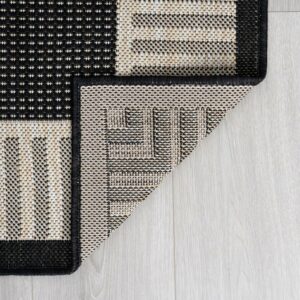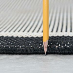 – 5×8 Water Resistant, Indoor Outdoor Rugs for Patios, Front Door Entry, Entryway, Deck, Porch, Balcony | Outside Area Rug for Patio | Black, Striped Border | Size: 5’3” x 7’3”