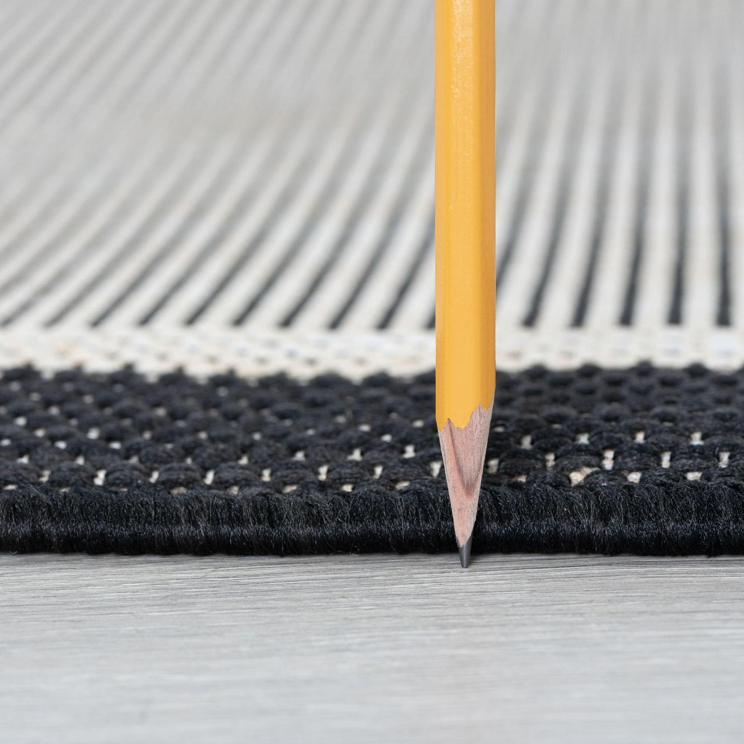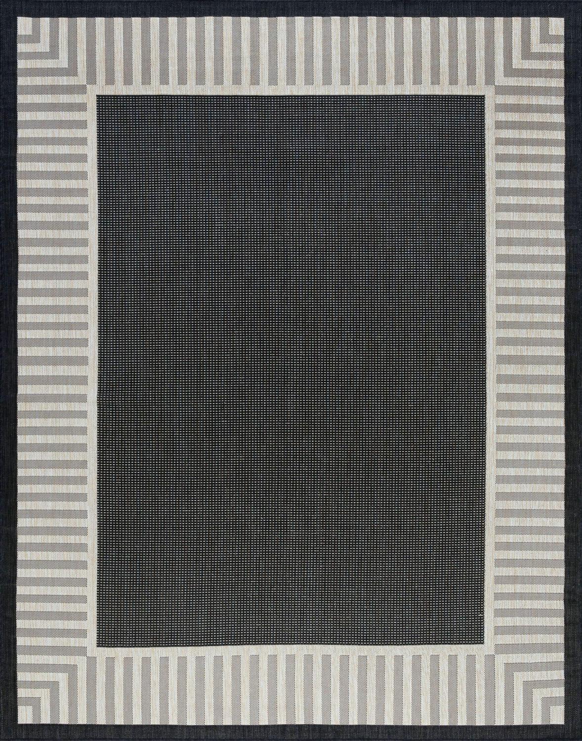 Create your private oasis with this solid indoor outdoor endurance area rug featuring a striped border. The simple styling is chic and elegant. Treated fibers resist staining and fading, this rug is built to perform. Perfect for a family room, sunroom, porch, deck, den, living room, playroom, nursery. May be cleaned outside with mild detergent and garden hose, allow to dry thoroughly. Transitional 5×8 Area Rug (5’3” x 7’3”) Striped Border Black, Cream Indoor Outdoor Rectangle Easy to Clean. Good fit for family room, deck, patio, porch, gazebo, veranda, nursery. Vacuum or shake to remove debris. Spot clean or clean outside with water; spray with garden hose to rinse. Allow to dry thoroughly.