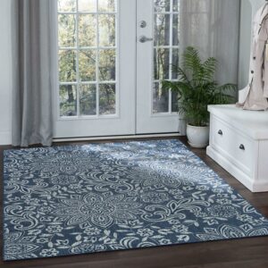 5×8 Water Resistant, Indoor Outdoor Rugs for Patios, Front Door Entry, Entryway, Deck, Porch, Balcony | Outside Area Rug for Patio | Navy, Floral | Size: 5’3” x 7’3”