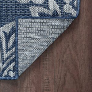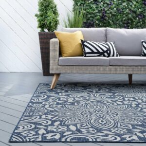 – 5×8 Water Resistant, Indoor Outdoor Rugs for Patios, Front Door Entry, Entryway, Deck, Porch, Balcony | Outside Area Rug for Patio | Navy, Floral | Size: 5’3” x 7’3”