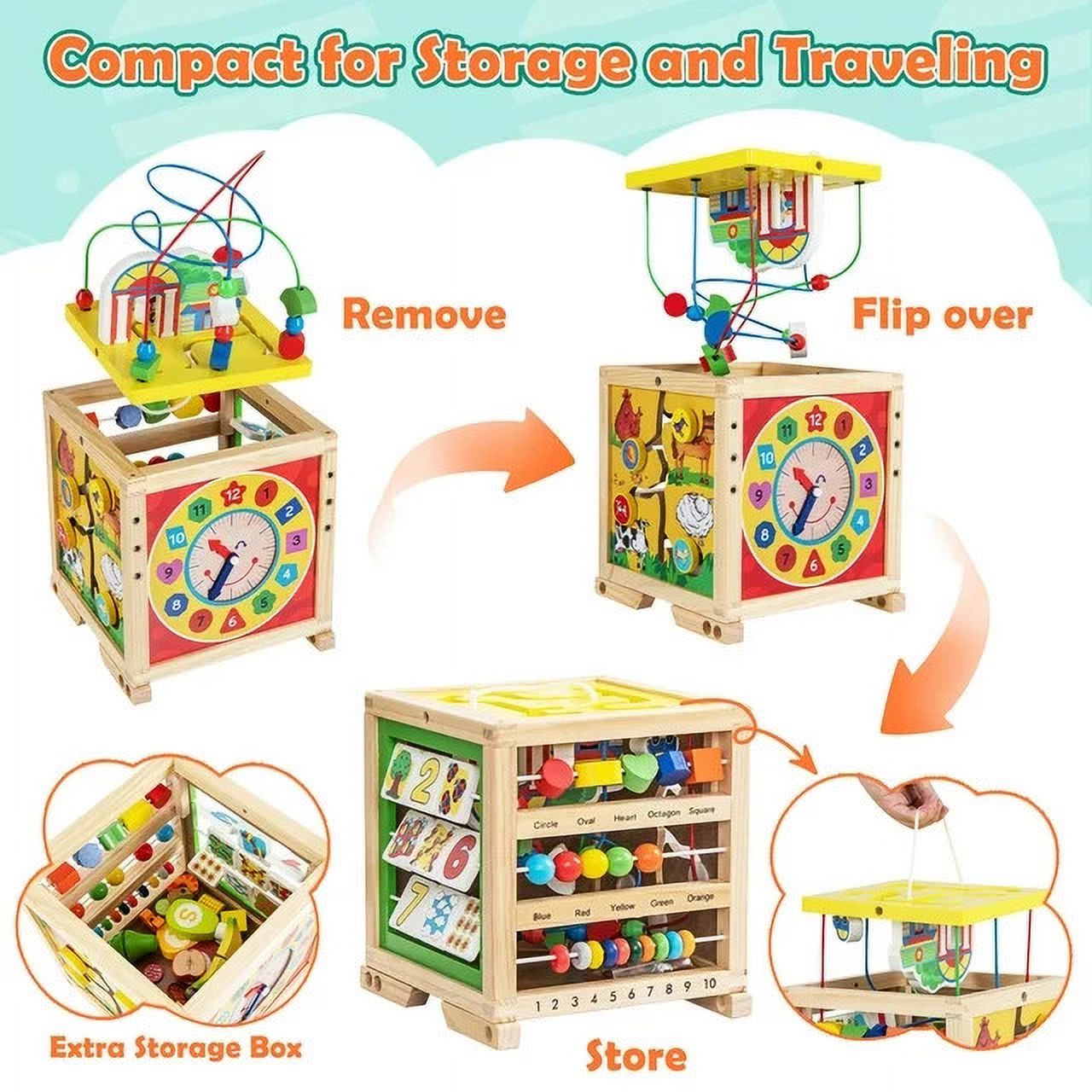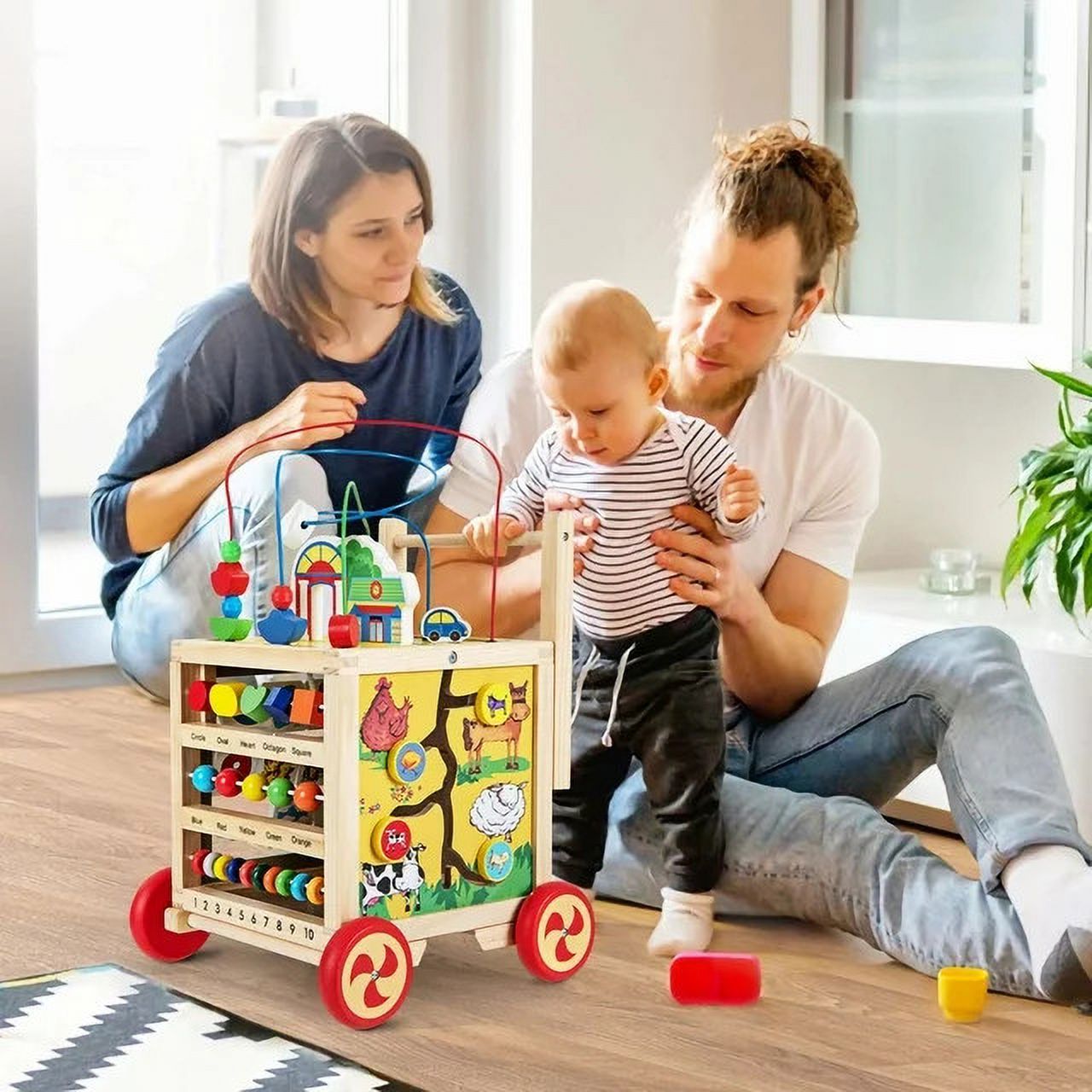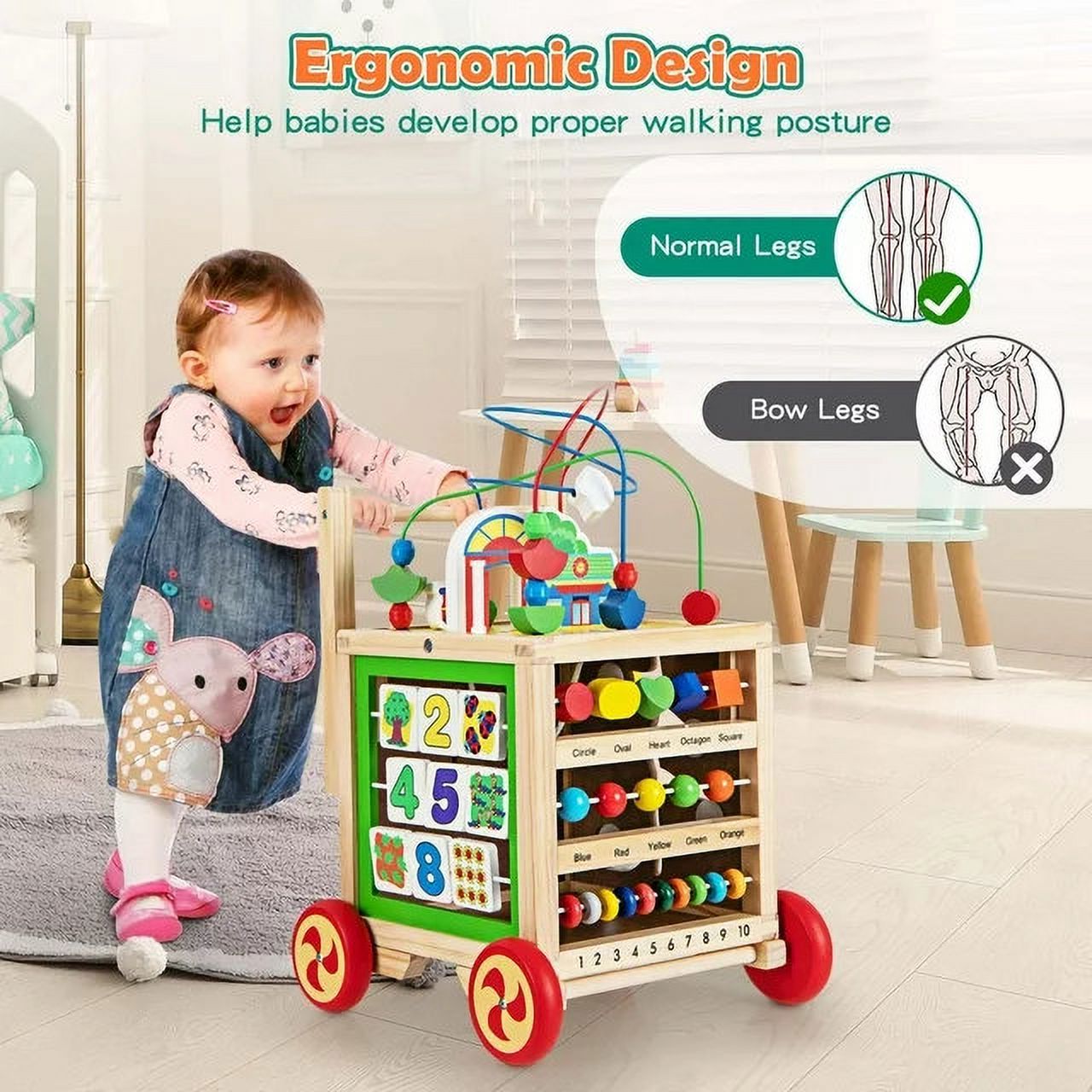 6 in 1 Baby Push Walker Wooden Activity Cube Center Learning Educational Toy