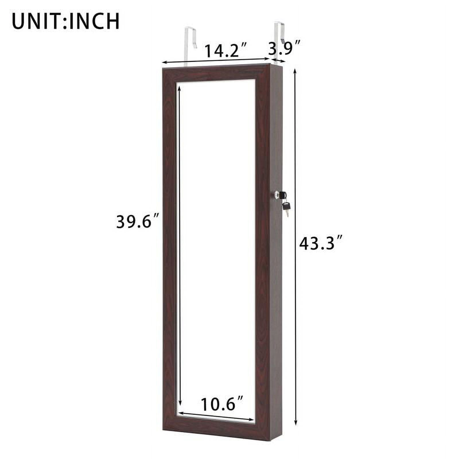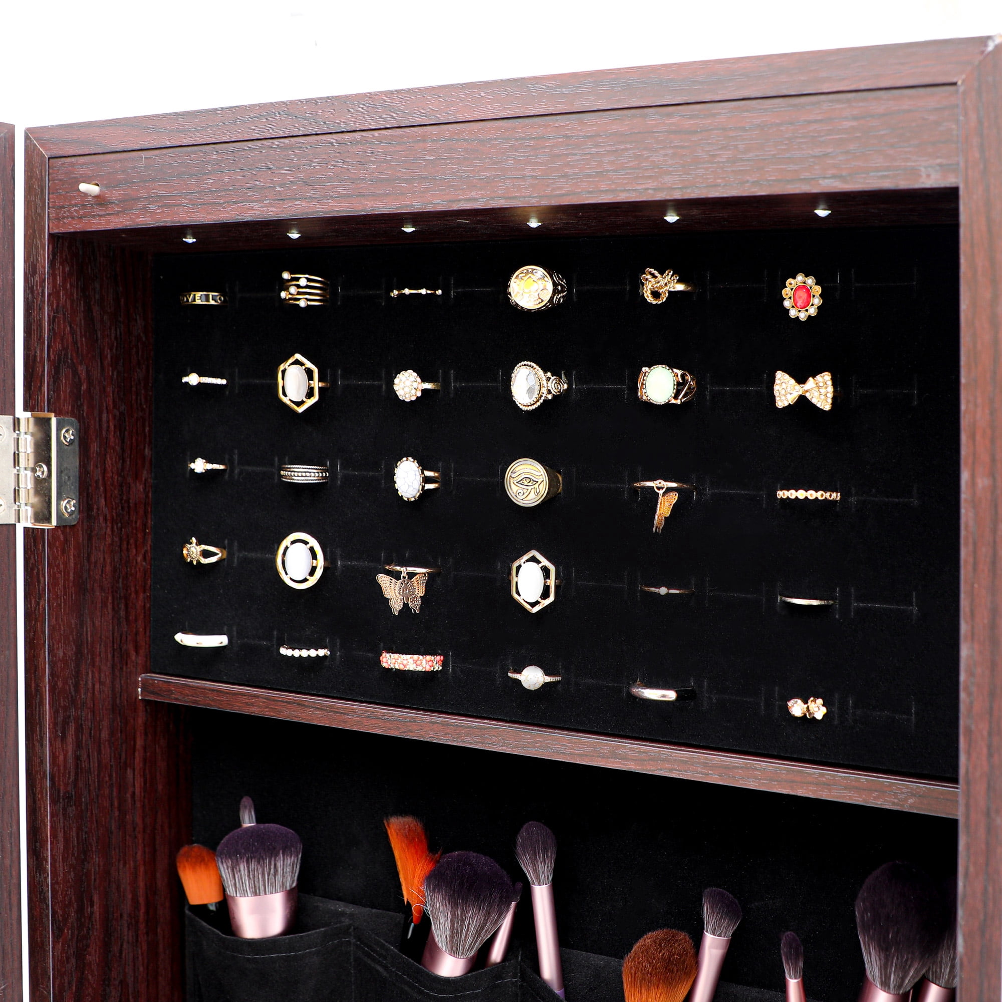 6-LED Light Jewelry Armoire Lockable Wall Door Mounted Mirror Jewelry Cabinet Armoire Storage Organizer Gift Brown