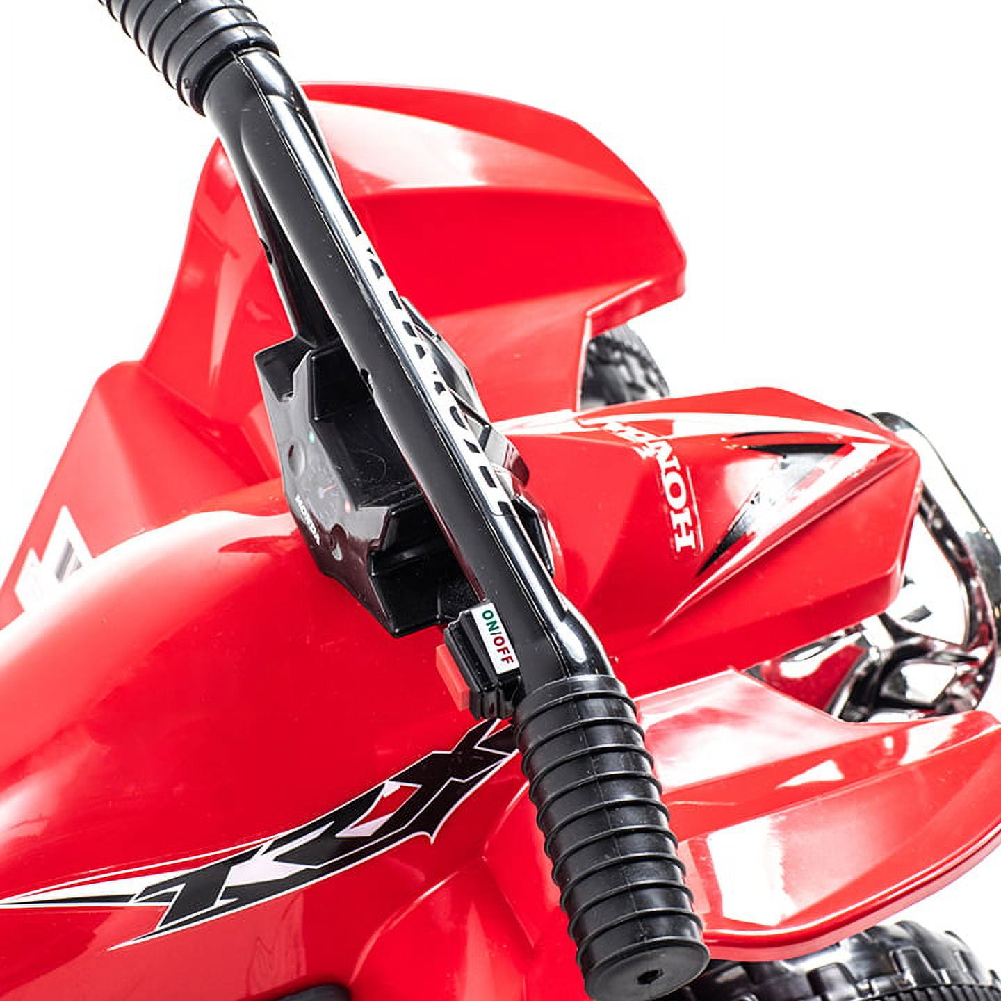6 Volt Red Honda TRX Authentic Honda TRX Graphics Easy single push button control Max speed of 2.5 mph Includes 6 Volt battery and charger
