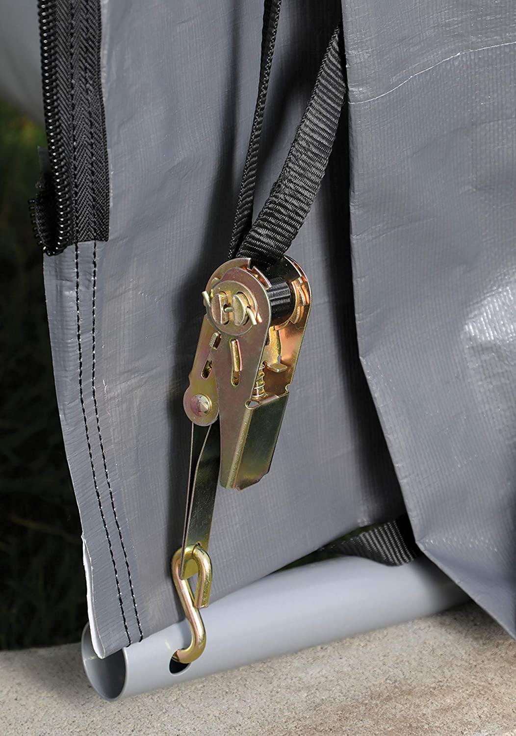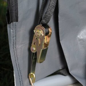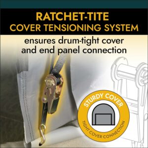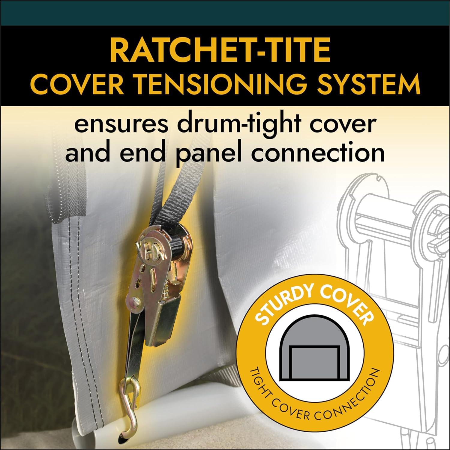 – Ratchet-Tite cover tensioning system ensures a drum tight cover and door-panel connection to shelter frame. Quality ratchet and web strap components keep cover tight and neat looking.