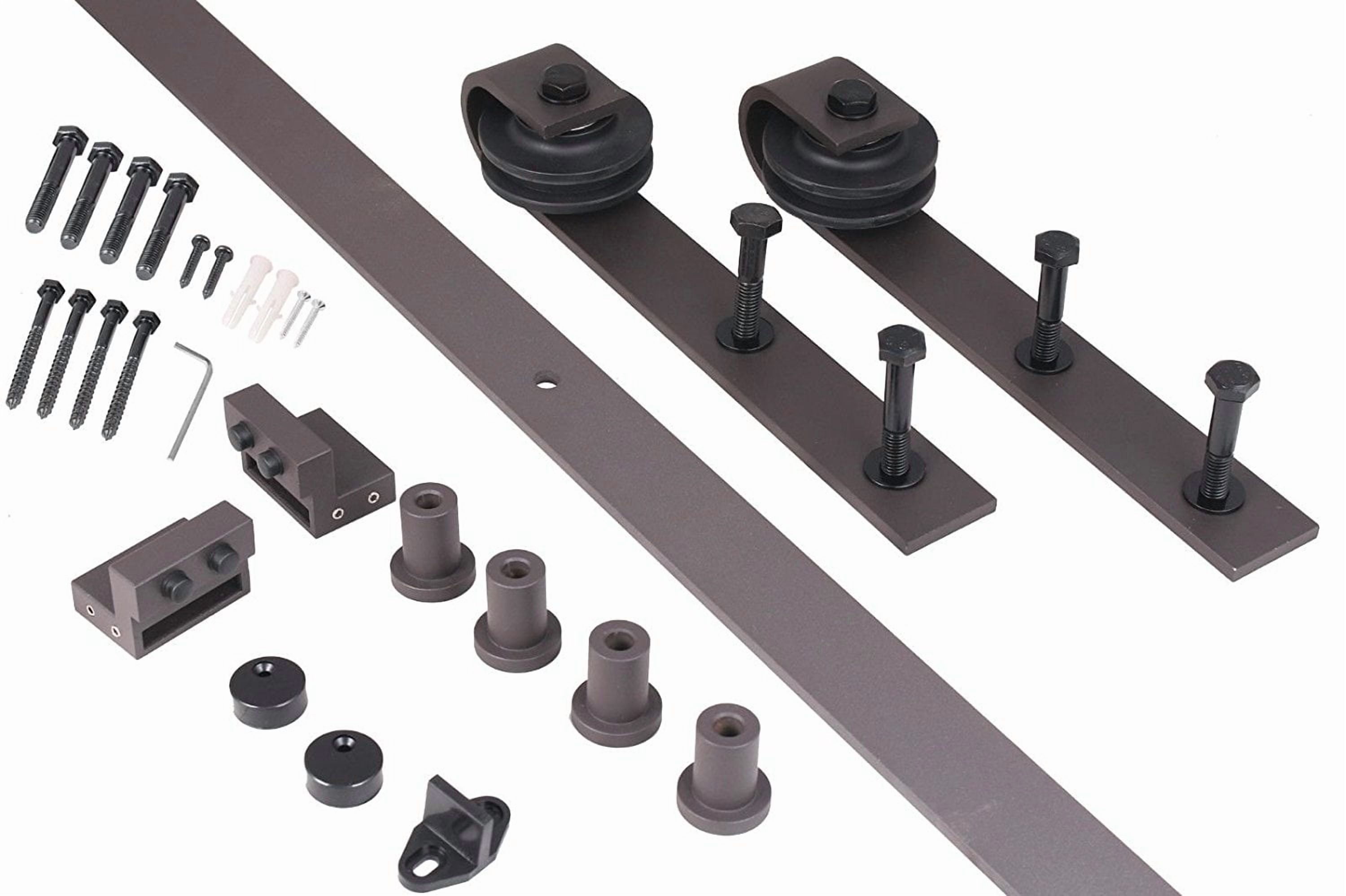 Constructed of high quality steel All mounting hardware comes in matching finish Includes detailed, easy to follow instructions Set includes 60 in. track, 5 wall hangers, 2 door stops, 2 rollers, 1 floor guide, washers, nuts and bolts Works with doors 1-1/4 in. to 2 in. and up to 200 lbs. Track and hardware only, door not included