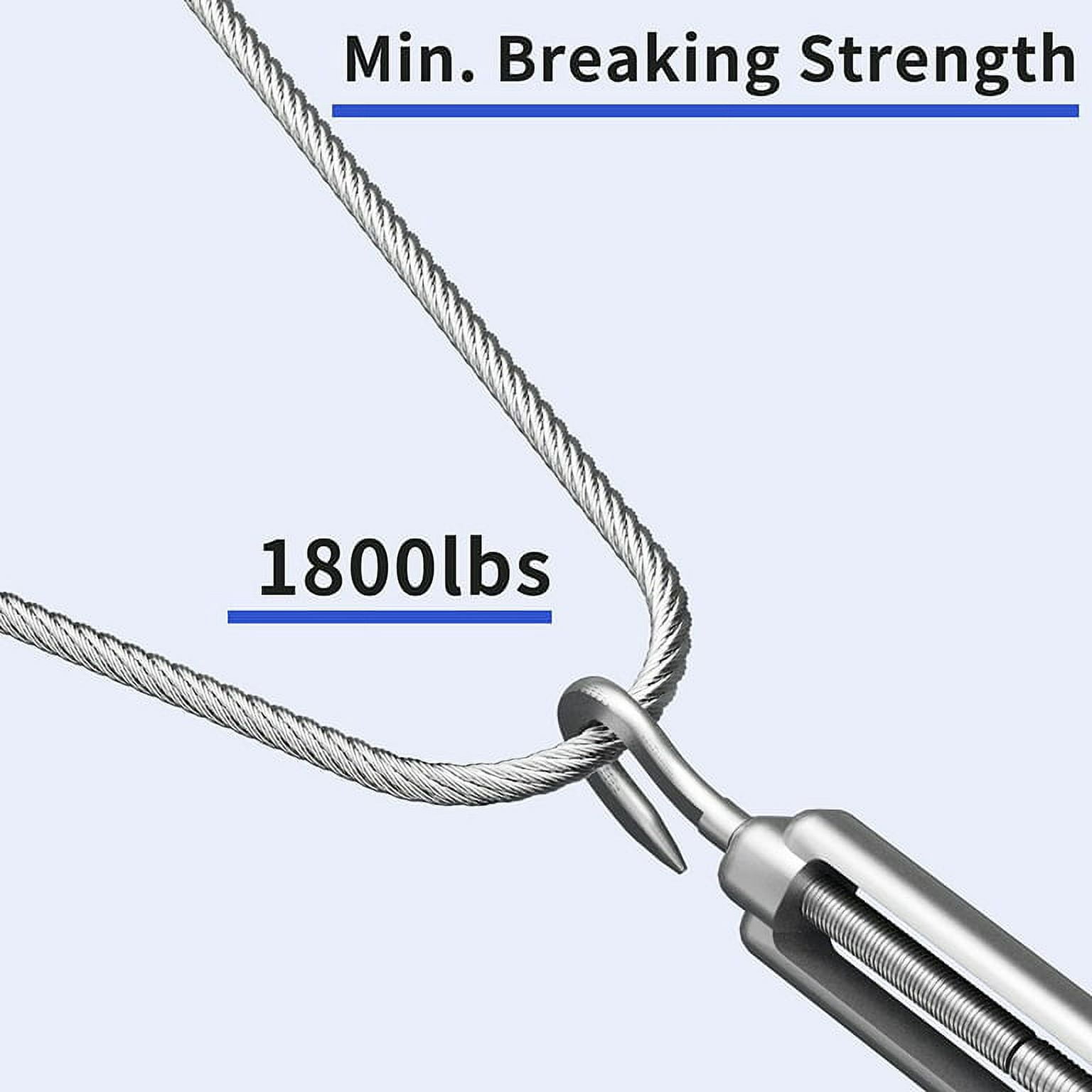 High-Quality Material. Sturdy Construction: With a breaking strength of 1800 lbs, the braided design ensures it won’t unravel after cutting and maintains its stretch over time. Wide Application: Ideal for building deck railings, wire fences, supporting light strings, shade sails, and more. Smooth Surface: The strands are neatly wound together for a burr-free, smooth surface, making it safe to handle and easy to install. Package Includes: Includes a 600ft roll of cable that can be cut to any desired length. Specifications: Color: Silver. Material: 316 Stainless Steel. Length: 600ft. Diameter: 1/8 in. Strands Construction: 7 x 7. Size: 8.1 x 2.8 x 1.4 inches. Weight: 11.2 ounces.