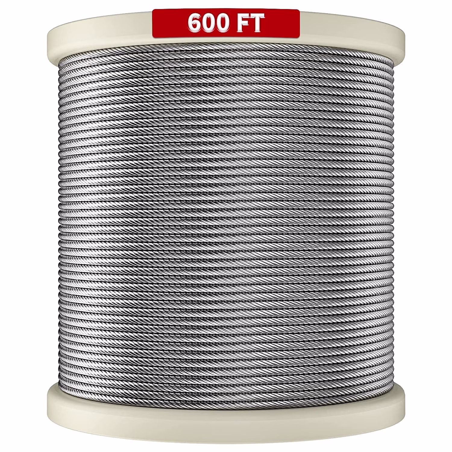 600ft 1/8 inch Stainless Steel Cable, T316 Deck Aircraft Cable Railing, Premium 7×7 Strands Wire Rope for Deck, Rail, Balusters, Stair, Handrail, Porch and Fence