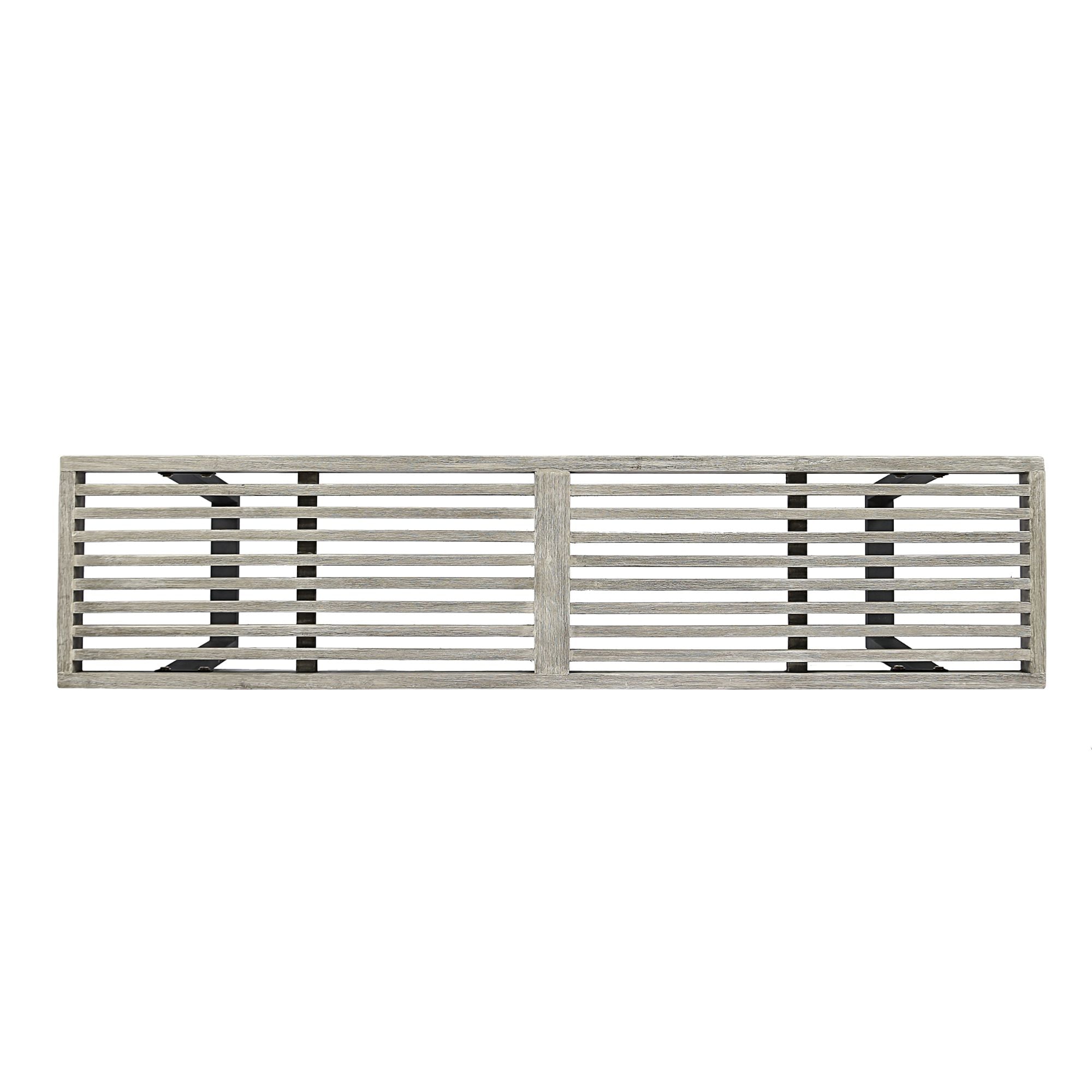 Item Description: An extra couple of seats on the patio never hurt anybody. The Fresno outdoor dining bench will charm your guests right off of their feet, greeting them warmly with its attractive and modern appeal. Hearty and rich acacia wood complements this piece’s closed iron legs in a look that is both rustic and contemporary. Feature-Benefit: CONTEMPORARY – Minimal and artistic in design, this product sports a sleek, slatted acacia wood sitting surface finished in a wire-brushed light gray wash set atop two closed pairs of black iron legs. VERSATILE STYLE – You’ll be able to pair this bench with a wide variety of tables, or simply include it in your current collection as a standalone piece. BIG ENOUGH FOR EVERYBODY – At 61.75″ in length, it’s able to seat three comfortably with room to spare. WEATHER-RESISTANT – Durable acacia wood and powder-coated aluminum make this piece an investment built to last. SOME ASSEMBLY REQUIRED – Everything you need to assemble this dining bench comes included with your purchase. Features: Includes: One (1) Dining Bench Seat Material: Acacia Wood Leg Material: Iron Seat Finish: Wire-Brushed Light Gray Leg Finish: Black Hand-Crafted Details Some Assembly Required Specifications: Product Dimensions: 18.5″ H x 61.75″ W x 14.5″ D Product Weight: 20.94 lbs