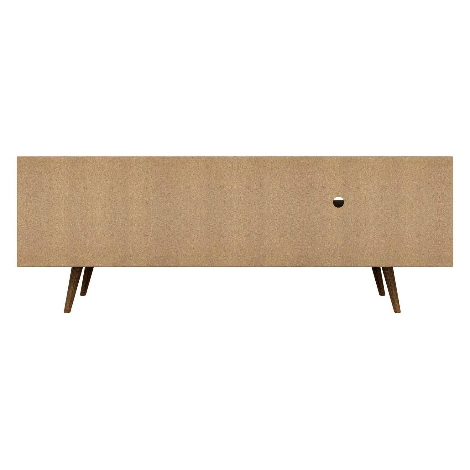 62.99 Mid Century – Modern TV Stand with 3 Shelves and 2 Doors with Solid Wood Legs, Brown, Yellow