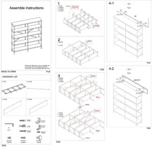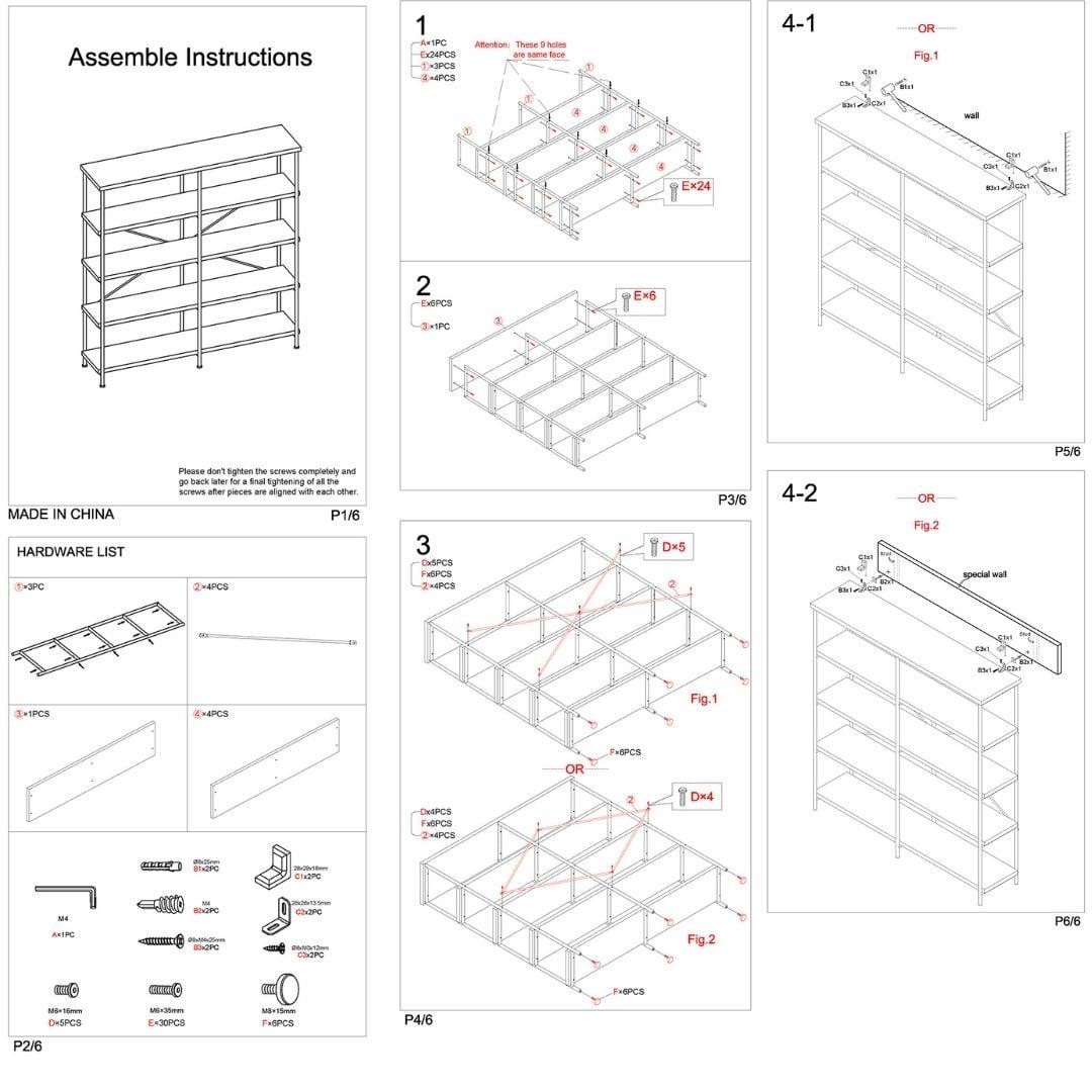 – 63 Inch Industrial 4 Tier Bookshelf, Particleboard, Metal Frame, Gray, Black