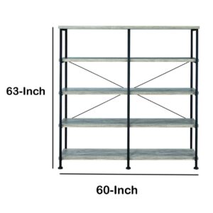 63 Inch Industrial 4 Tier Bookshelf, Particleboard, Metal Frame, Gray, Black, Saltoro Sherpi