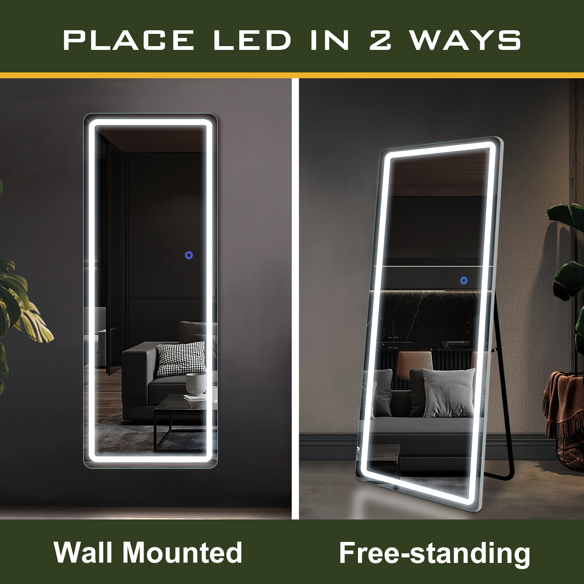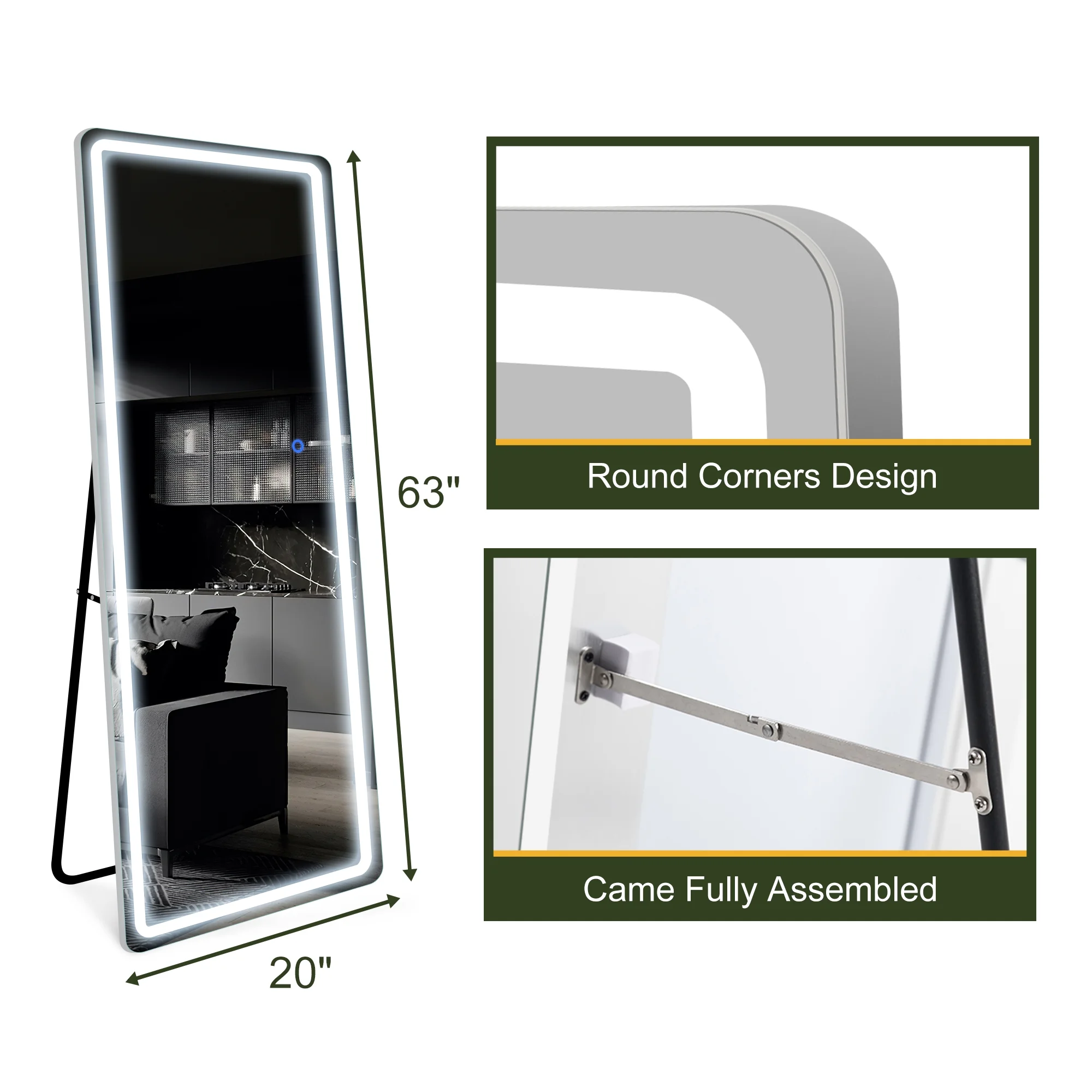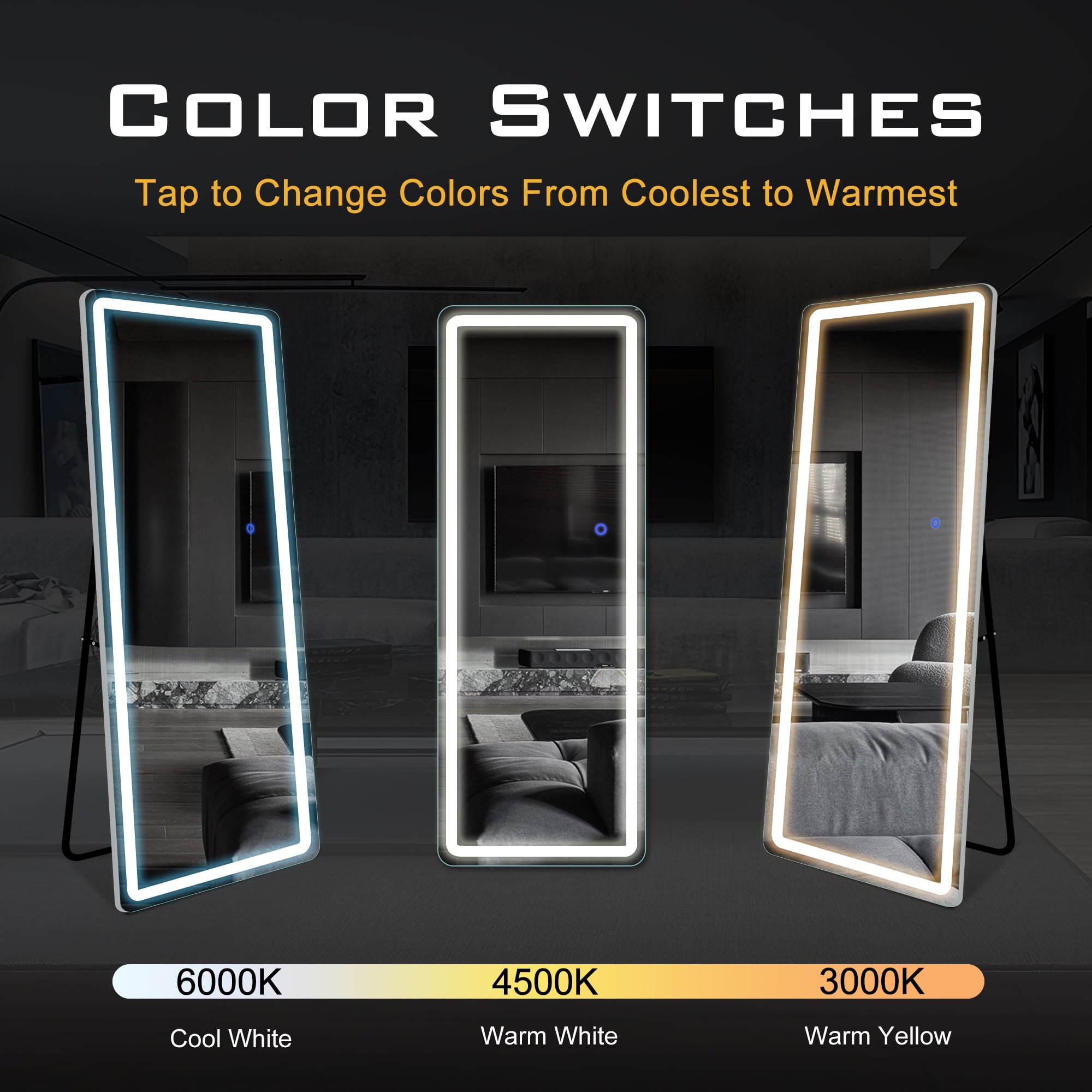 Neutype 63″x20″ Modern Rectangle LED Full Length Mirror Floor Mirror with Bracket Introducing our innovative and stylish product, the 3-Color Selection Smart Touch Mirror. Designed with cutting-edge technology and premium materials, this mirror combines functionality and aesthetics to enhance your daily routine and elevate your space.