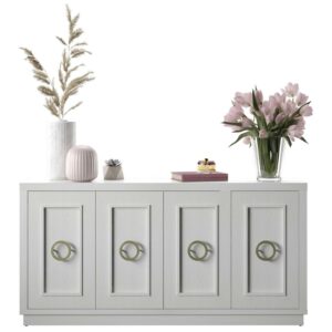 With plenty of storage and a sleek profile, this sideboard is a perfect solution for keeping dining room essentials and entertaining supplies organized in style. The double door design allows you to store pots, pans, and large serving dishes. Adjustable interior shelves make it easy to design a custom fit for your belongings, or use this sideboard as a striking living statement piece. Start with this sideboard and grow your collection with matching pieces for a wonderful, cohesive look across your living area and dining space.