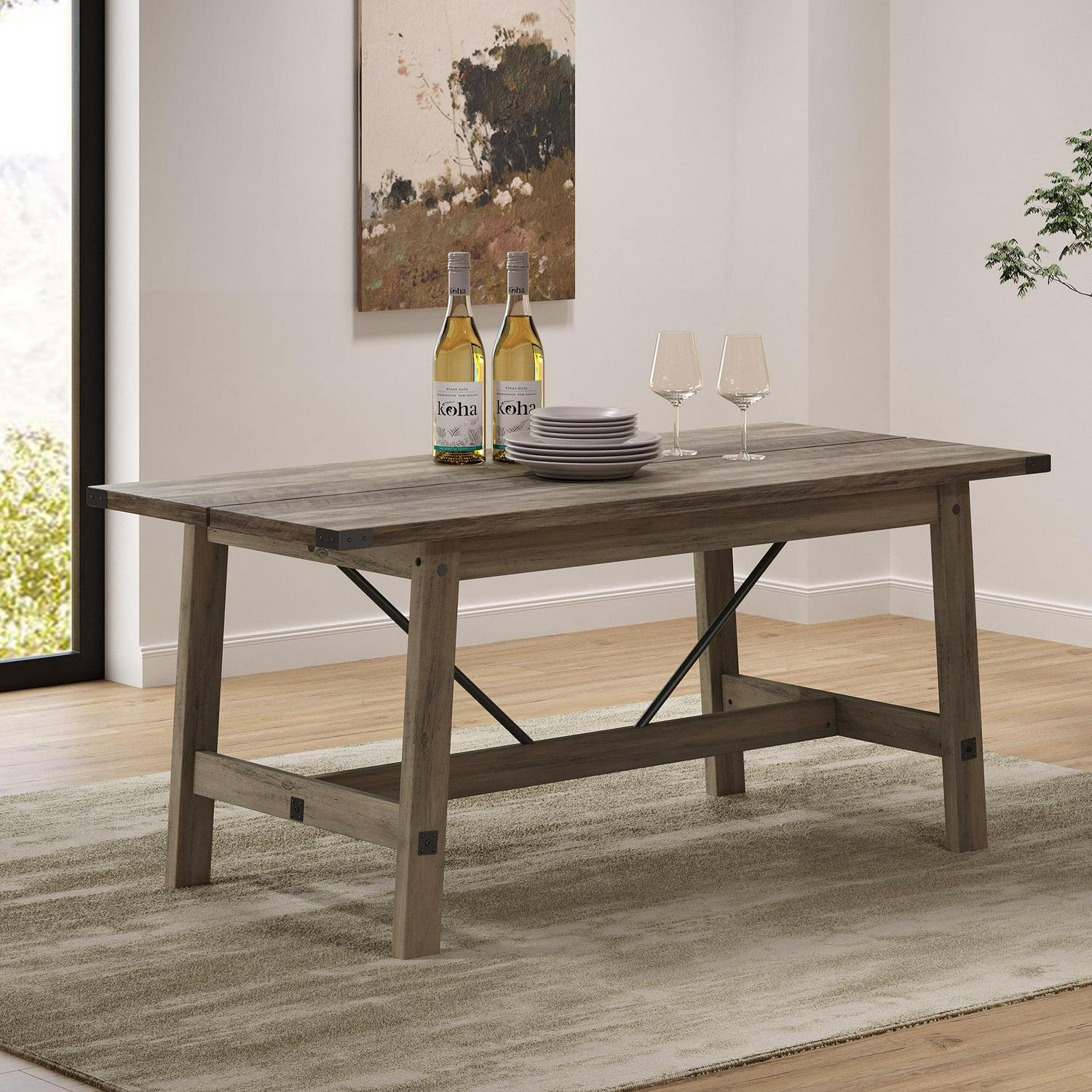 67.7 Rustic Grey Dining Table for Kitchen Room, 6 Person Modern Wood Table