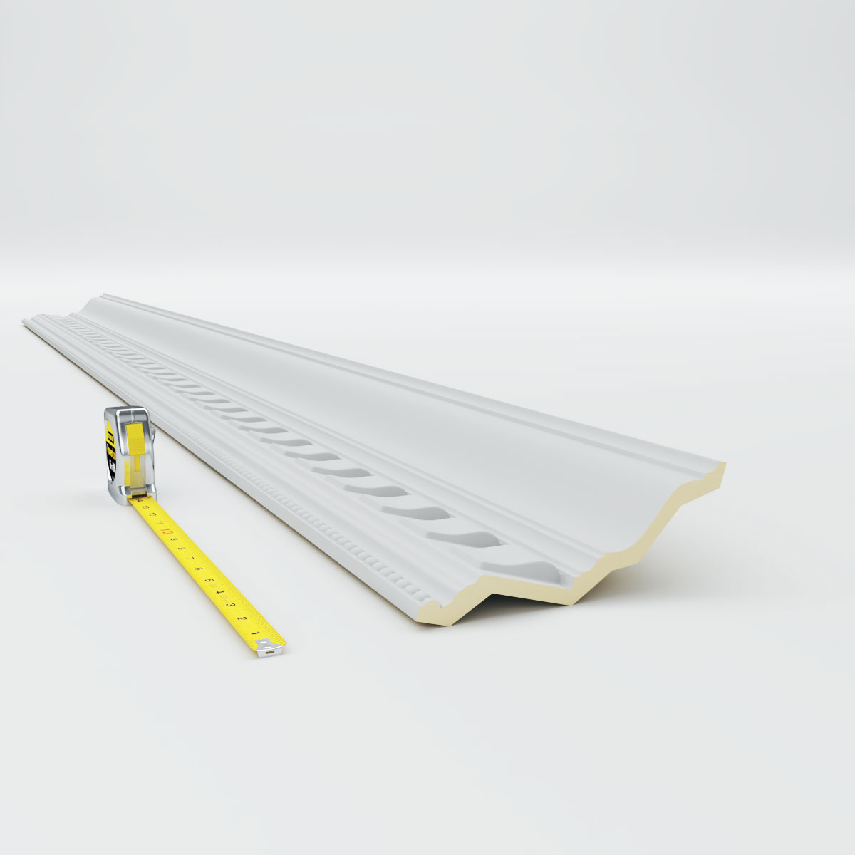 7 1/4″H x 5″P x 8 5/8″F x 94 1/2″L, (2 3/4″ Repeat), Nouveau with Bead Crown Moulding