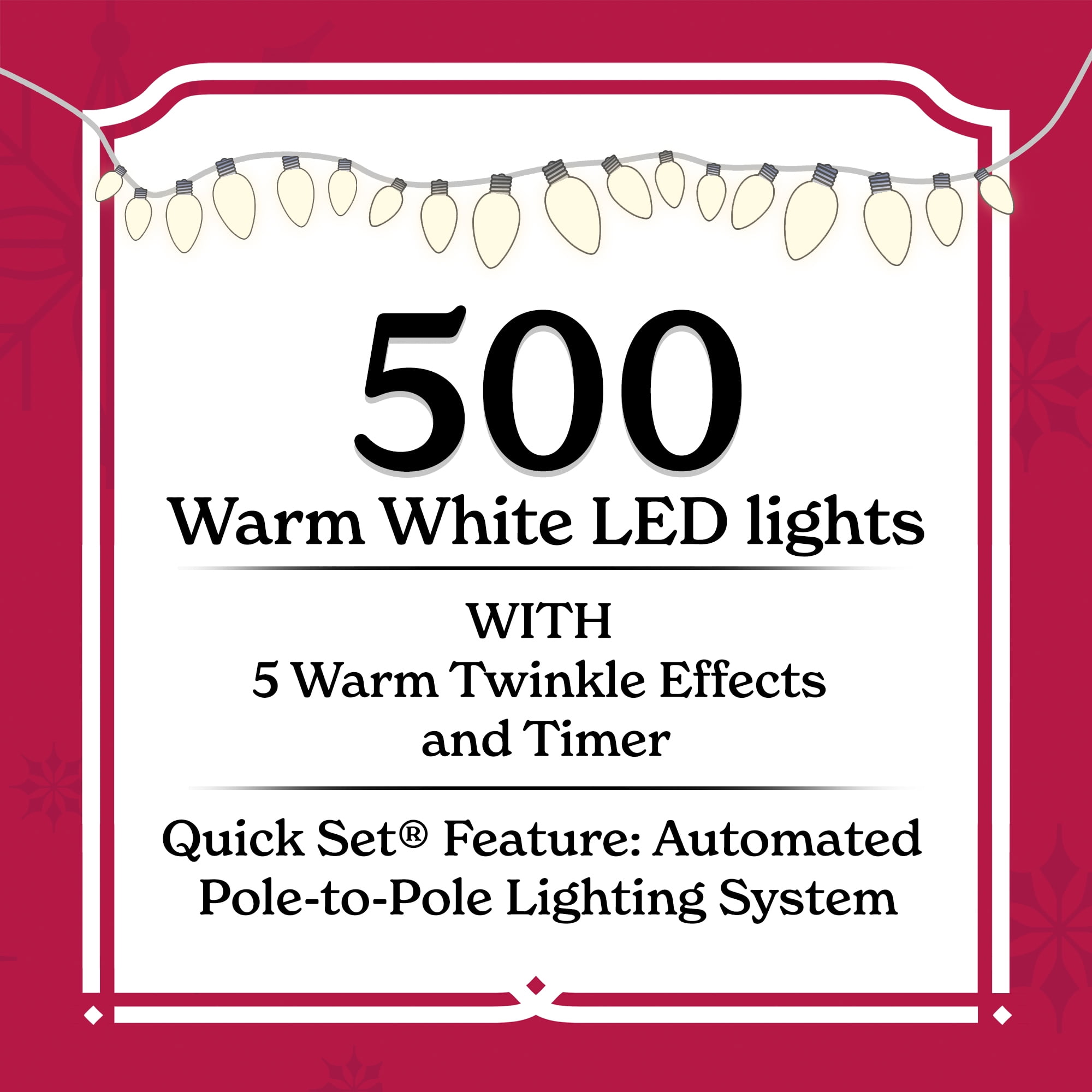 Holiday Time 7.5 ft Pre-Lit Birchwood Fir Artificial Christmas Tree with 500 Clear Twinkle LED Lights and Stand 1,555 branch tips 500 pre-strung clear twinkle LED lights Quick Set feature: automated pole-to-pole lighting system 5-function light controller and timer Metal tree stand included Easy setup – slide the tree sections together for quick display Pre-attached hinged branches Extra sturdy top branch for your tree topper For indoor use only Flame-retardant Color: Green 4.17 ft diameter Product Dimensions: 50″ DIA x 90″ H Model #: TG76P4J05L02