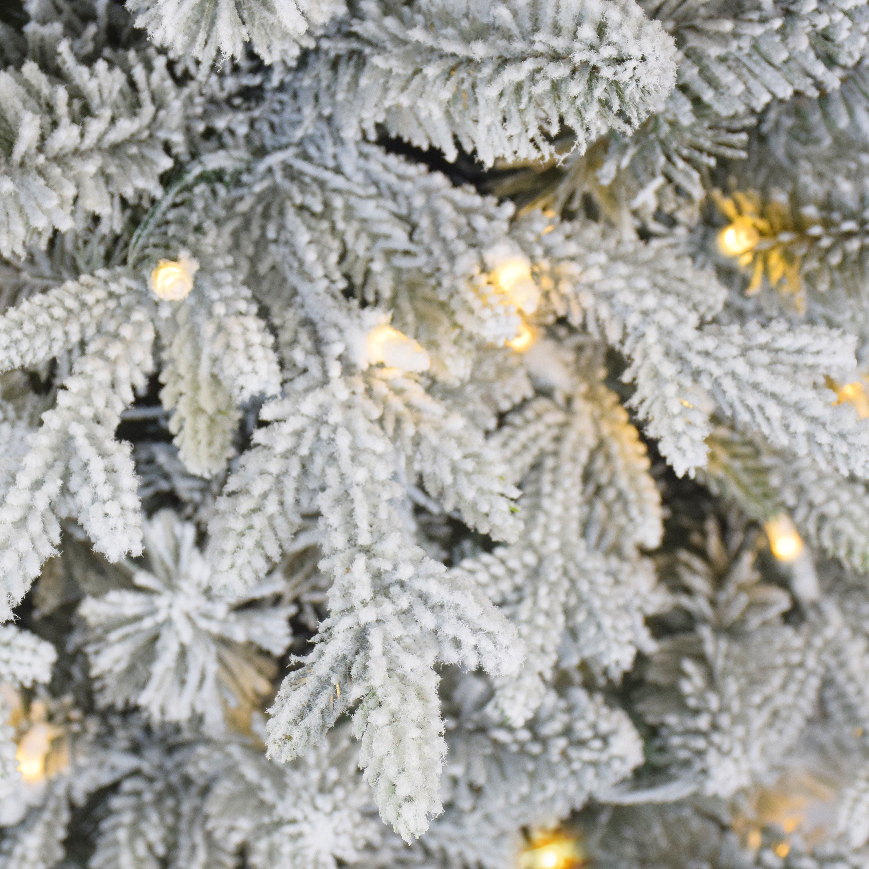 7.5′ LIFELIKE CHRISTMAS TREE: 2365 PE/PVC life-like pine needle branches create the natural look of a real Slim Flocked Northern Fir Christmas Tree for a timeless holiday accessory PRE-ATTACHED LED LIGHTS: 400 color select LED lights illuminate your home through foot pedal activation and a UL listed adaptor, eliminating the time and effort of hanging lights on your tree REALISTIC APPEARANCE: Features elegant snow-dusted pine needles that stimulates a realistic feel to deliver a perfect touch of snowy ambiance even if a white Christmas is not on the forecast