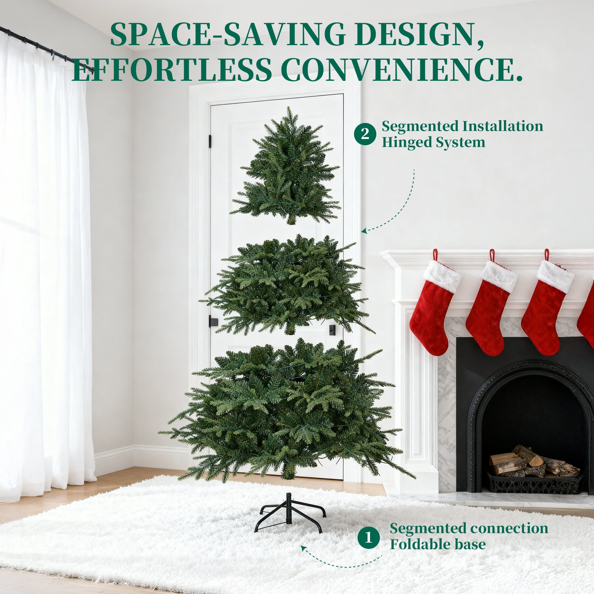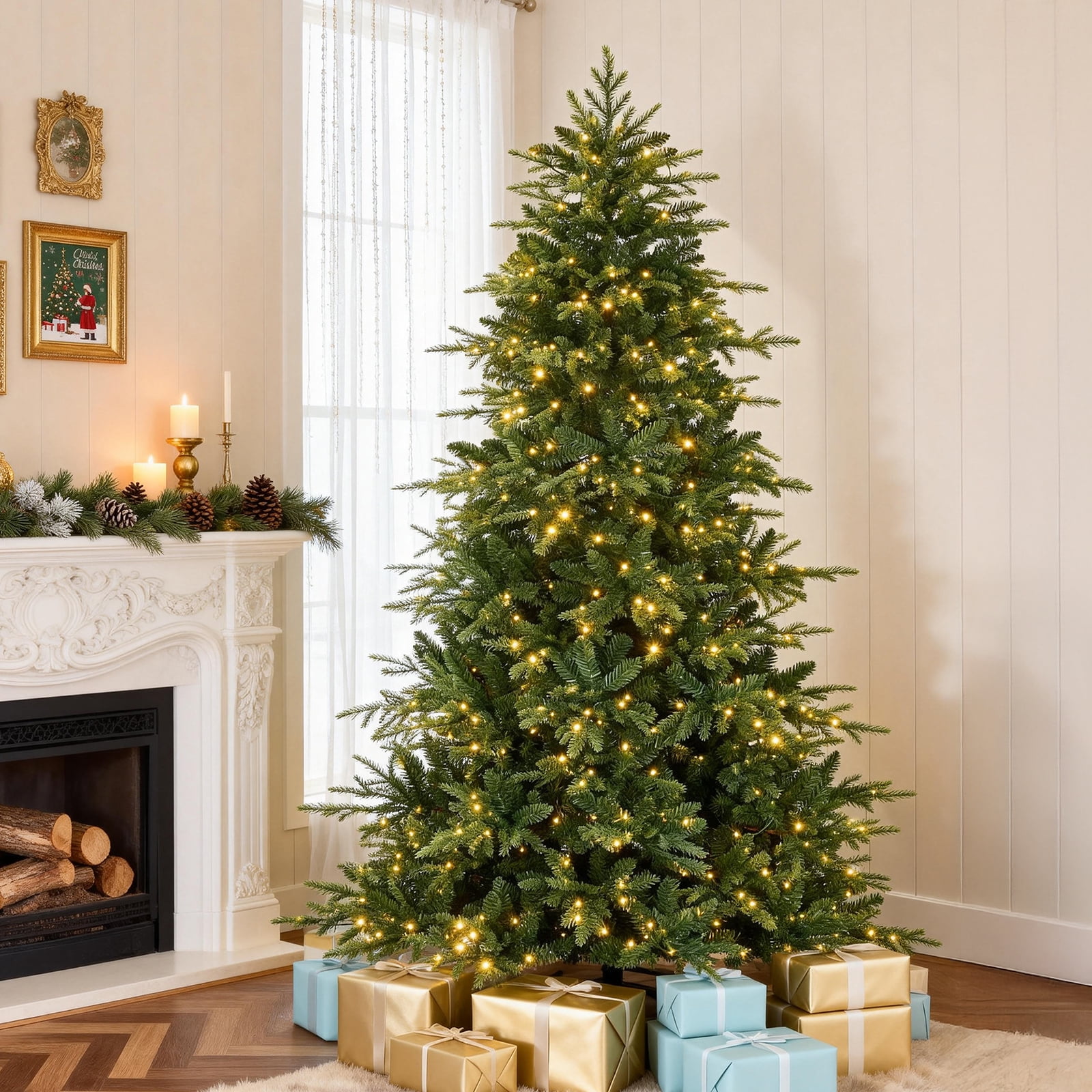 Home / Seasonal Décor / Vebreda Pre Lit Aspen Noble Fir Christmas Tree 6ft with 300 LED Lights and 11 Modes Full Shape Flame Retardant PE PVC Hinged Branches Easy 3 Step Assembly