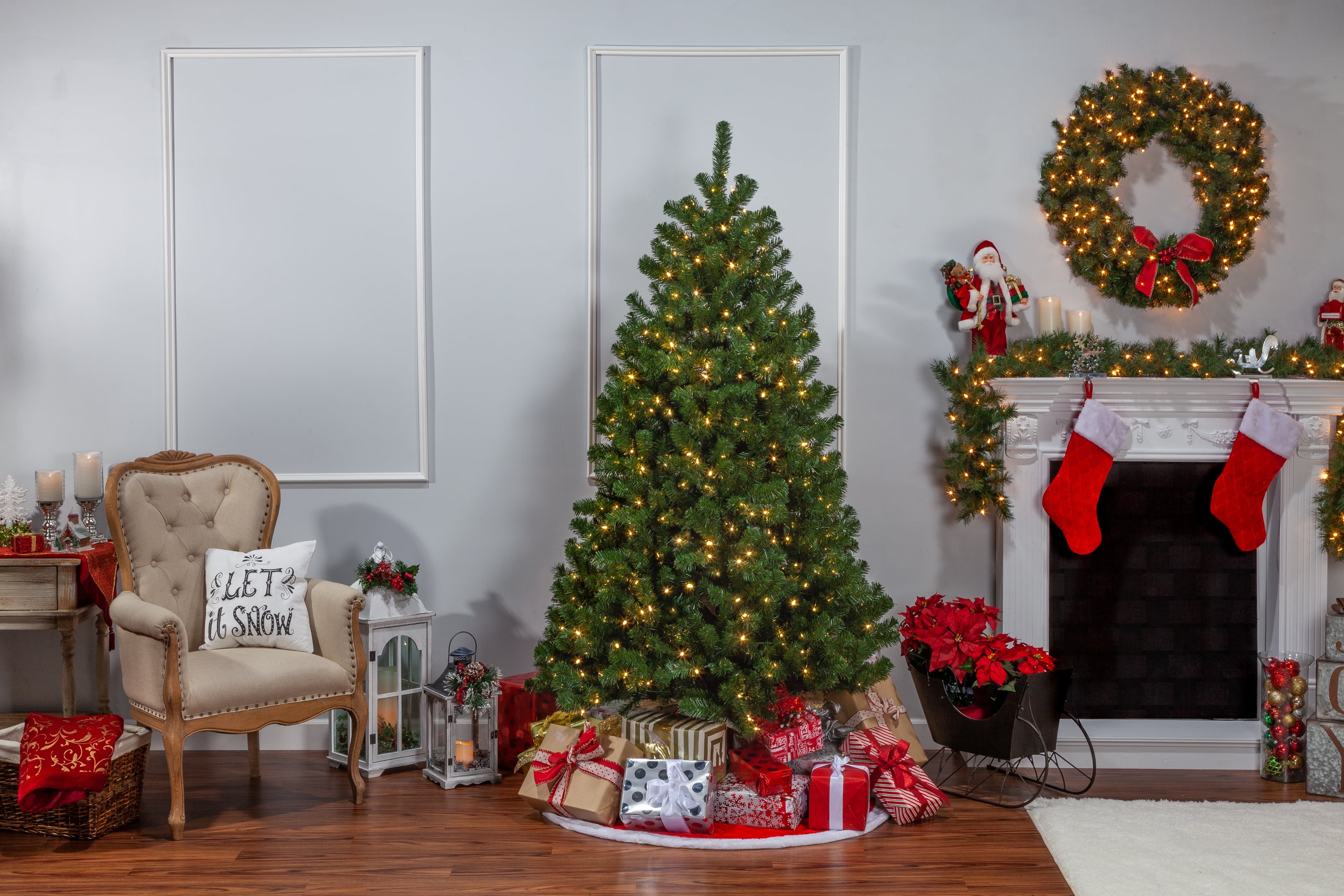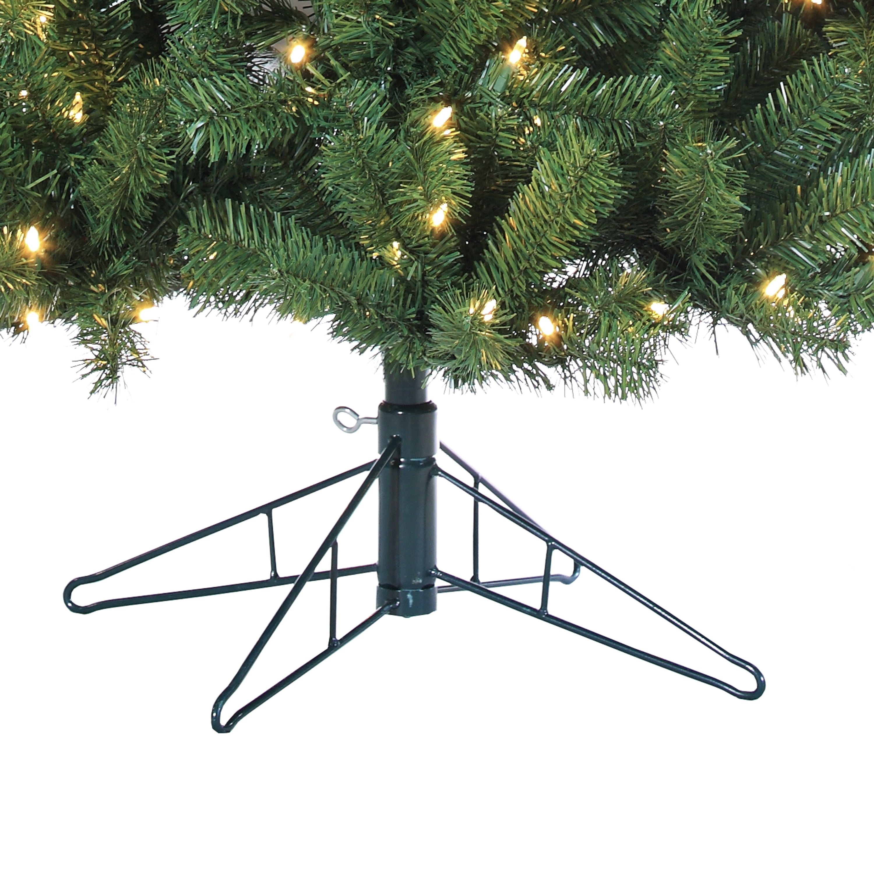 Sterling Ease into the holidays with this awe-inspiring pre-lit, natural cut Montana Pine Christmas tree that will light up your holidays! A towering 7-feet high with that classic look and a shapely base diameter of 50 inches, this stunning Pine comes with 400 UL-Listed, warm white LED lights that add an economical hearth-and-home glow, but without the mess and fire dangers of a live-cut tree. Safe, fire-resistant needles provide an amazing 1026 Pine branch tips to put your favorite ornaments on display. It’s an eye-catching centerpiece providing the cheer to make your holidays a lasting memory. Comes with a 21-inch diameter, sturdy four-prong stand for safety and stability.