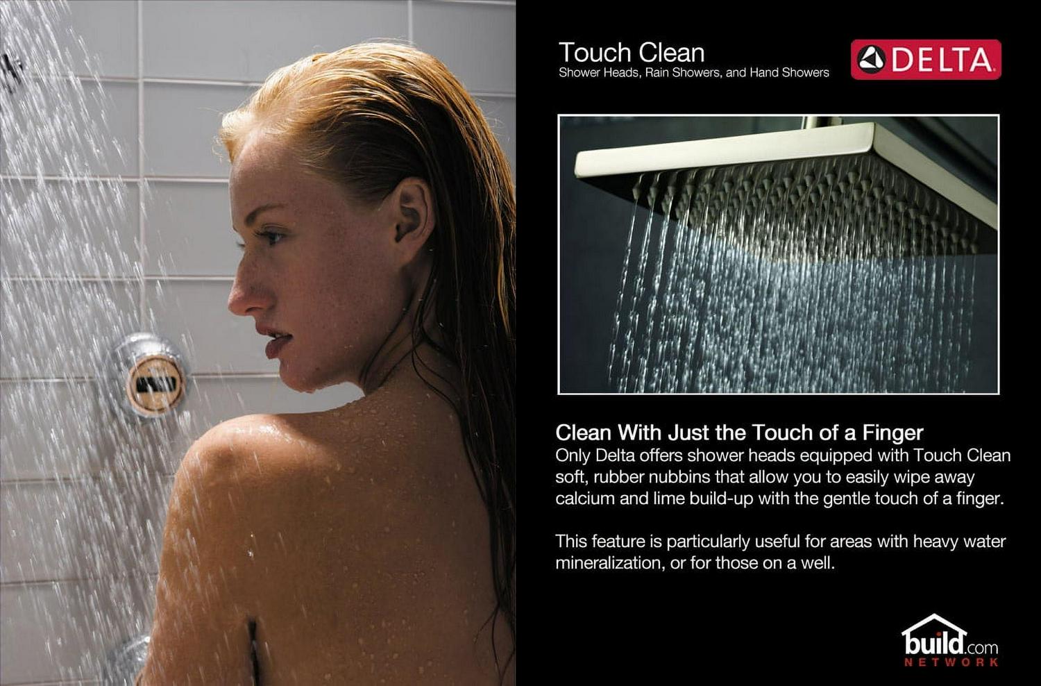 – Soft, rubber Touch-Clean spray holes allow you to easily wipe away calcium and lime build-up from the spray face of your shower head and hand shower with the touch of a finger