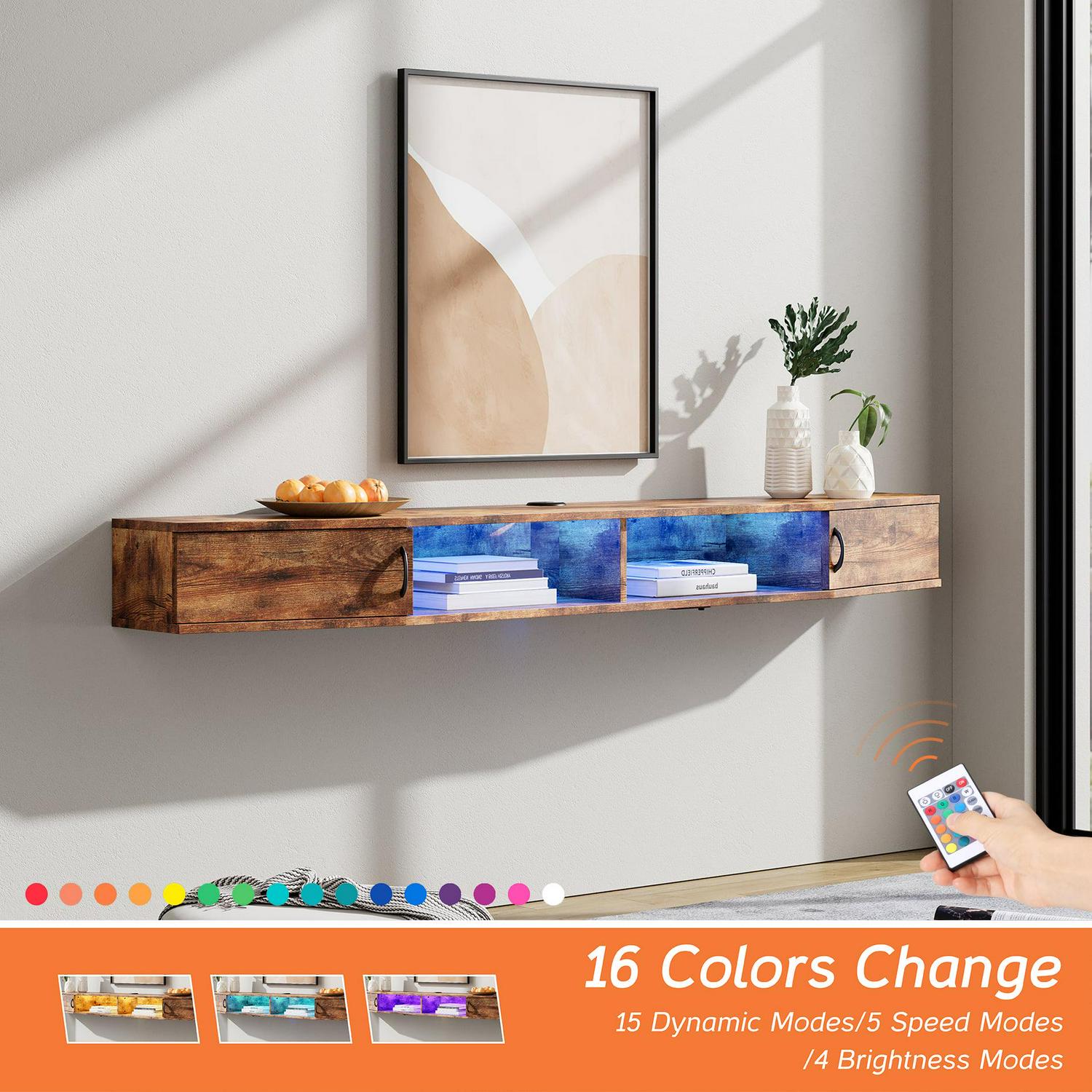 – Dynamic LED System: This white floating tv stand comes with Colorful LED lights and a remote control, there are 16 colors light and 4 dynamic modes for you to choose, creating a beautiful atmosphere to your living room or bedroom.