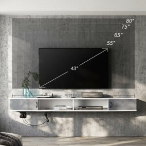 70 Inch Floating TV Stand with Storage Cabinet for TVs up to 80 inch,White&16 Colors
