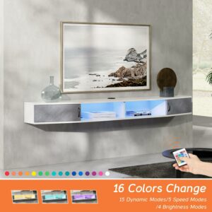 70 Inch Floating TV Stand with Storage Cabinet for TVs up to 80 inch,White&16 Colors Lights