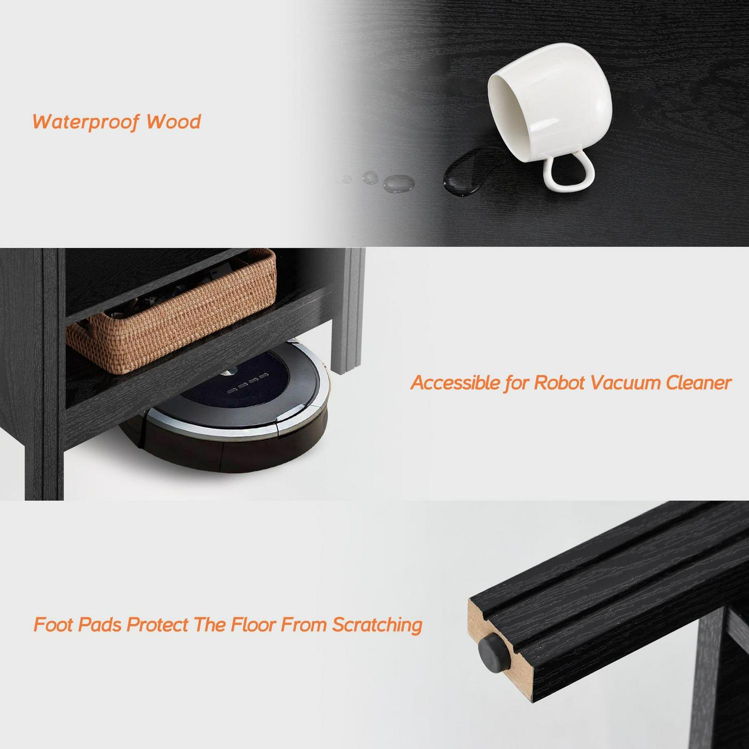 Classic & scratch-proof appearance Clean lines and sleek appearance deliver a simple yet classic style. Made of thick boards P2 MFC panels with a delicate melamine finish that features excellent anti-scratch & waterproof performance with great rustic wood grain finish, the concealed TV stand is not easy to wear and has a long life