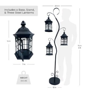 – Set Includes a Base, Stand, and Three Steel Lanterns