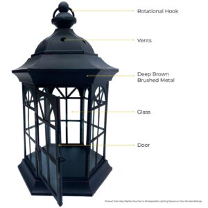 The Backyard Expressions Outdoor Steel Lantern Set is designed to stand up to the elements and shine in any situation, with it’s rust-resistant coating and heavy, sturdy base. The artistic feel of this ambient outdoor lighting structure is ideal for any patio, entryway, garden or even indoors. Assembly takes just minutes. No candles included. Designed for use with tea light candles or battery operated candles.