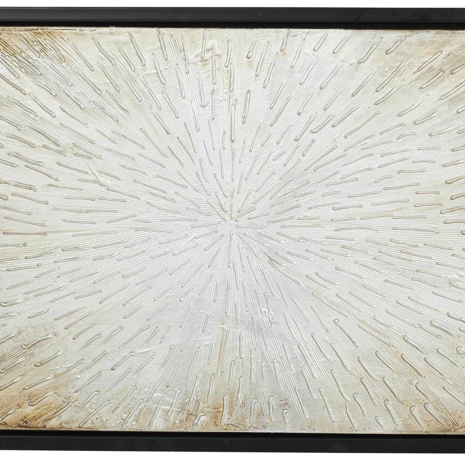 – This framed canvas art wall decor features a glam style inspired design with a play of color resulting to the formation of a sunburst in the middle of the canvass with rays extending outwards