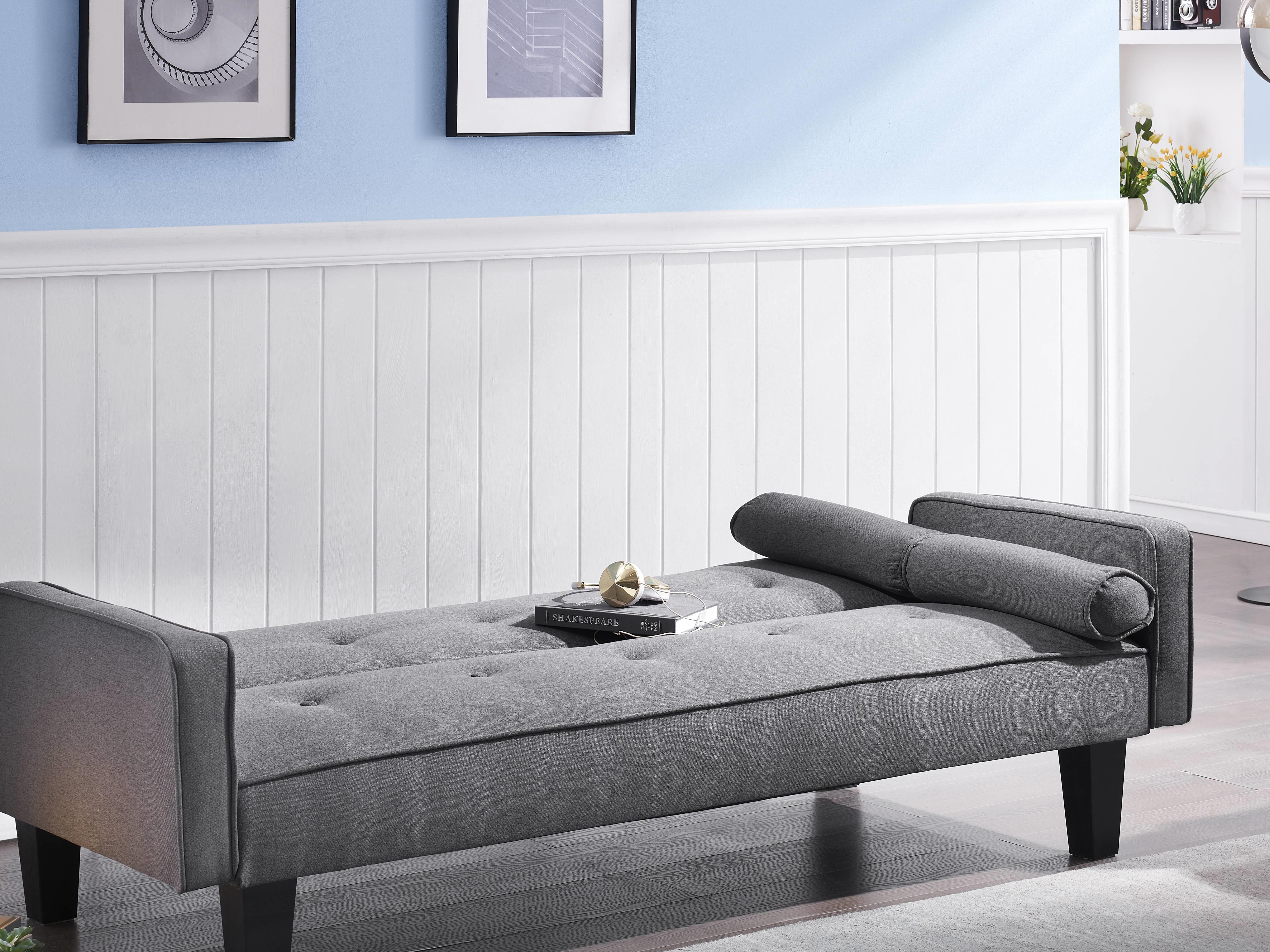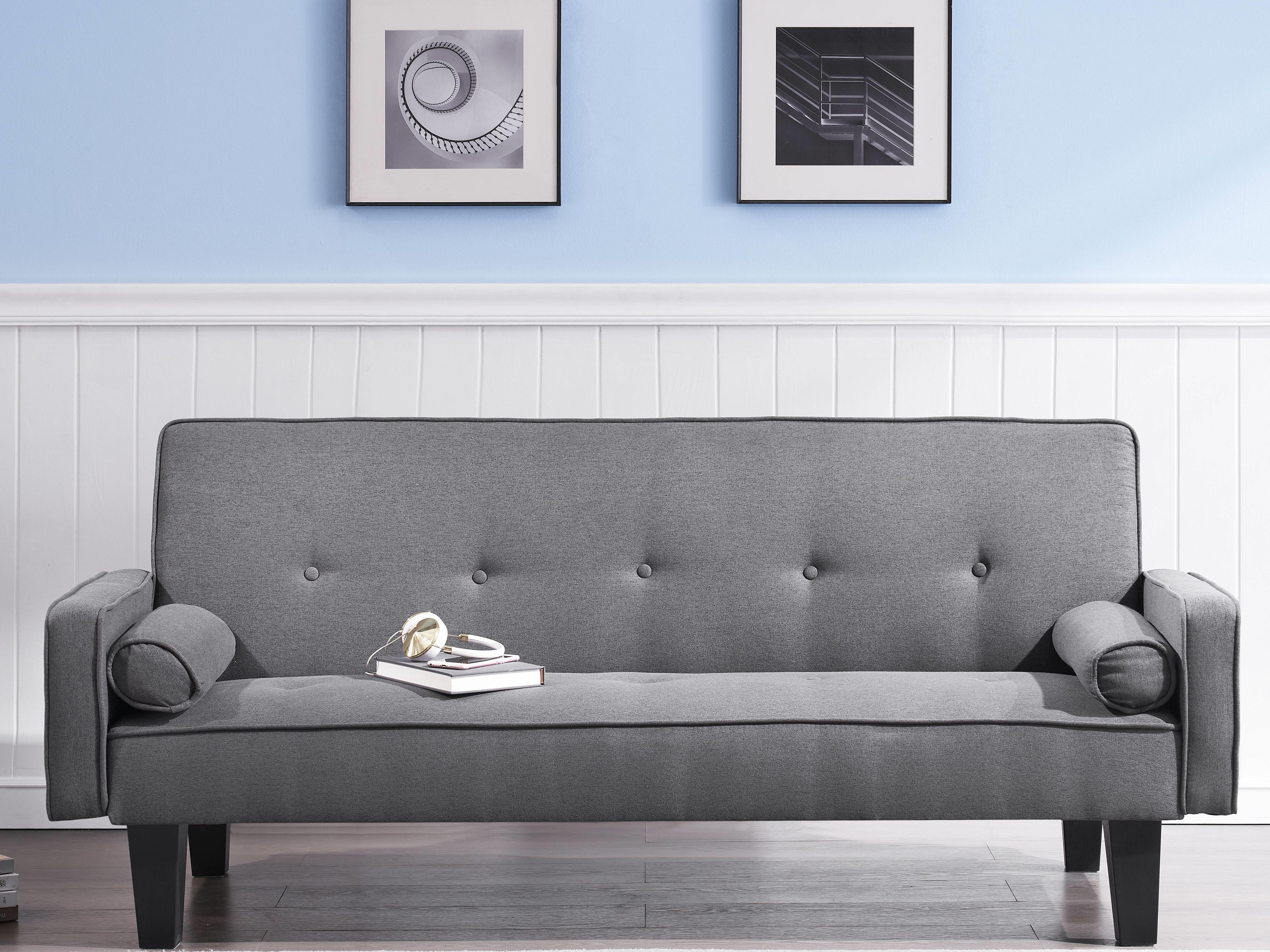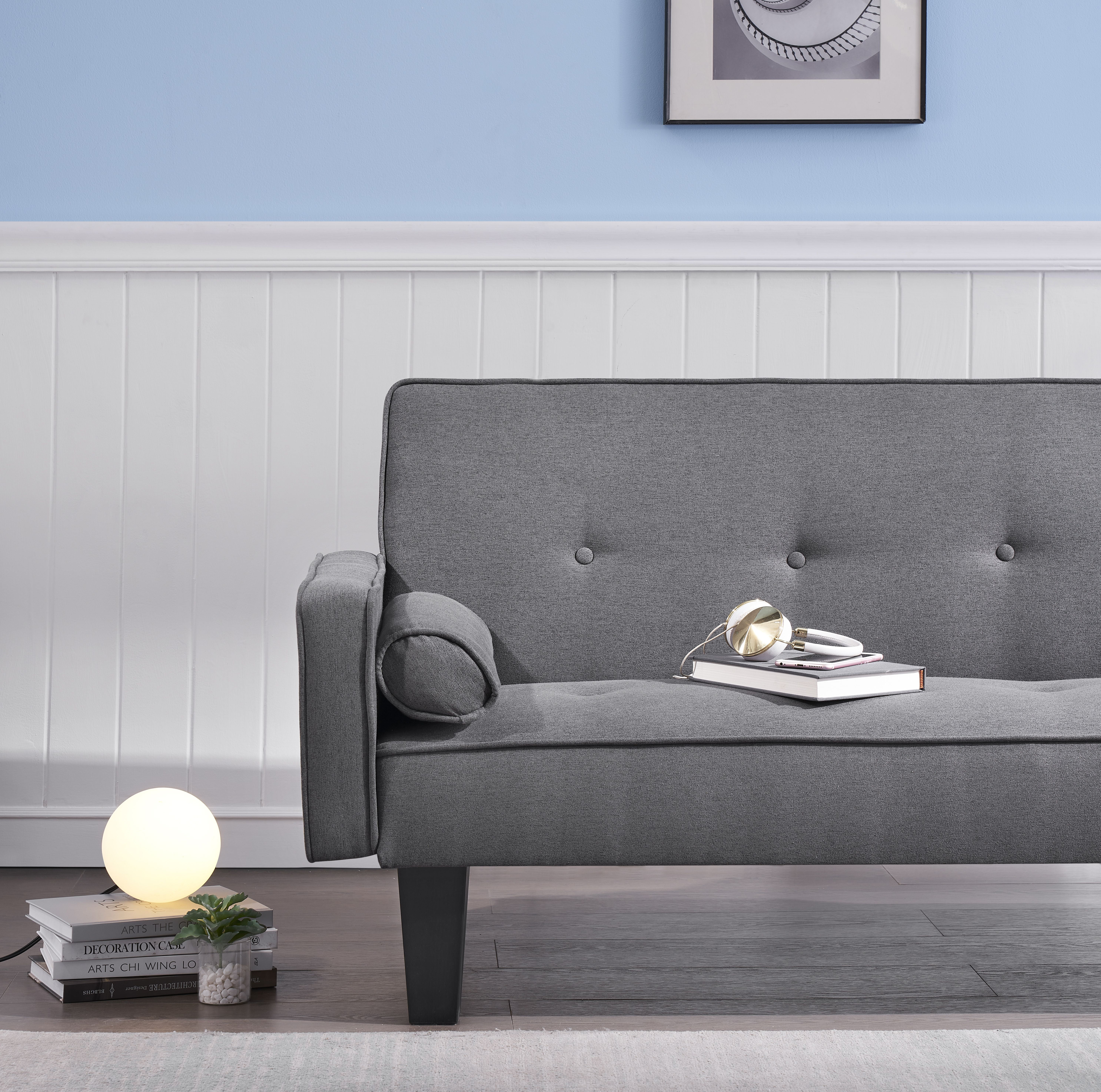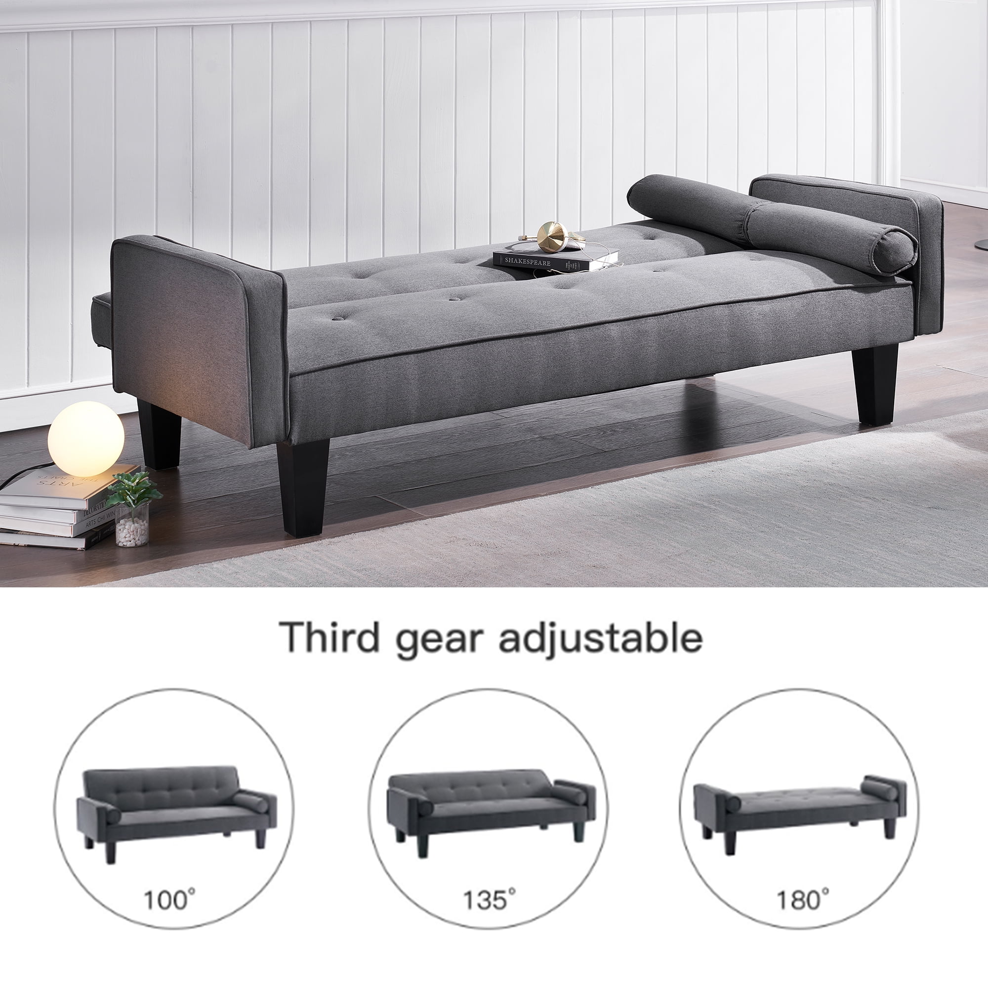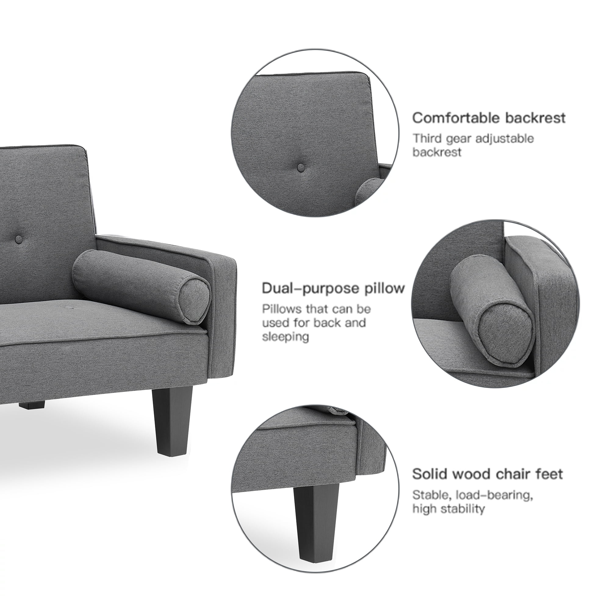 Sofa Convertible into Sofa Bed Includes Two Pillows 72″ Dark Grey Cotton Linen Sofa Bed for Family Living Room 1.This product adopts modern and simple style to give the living room due surprise. 2.This modern casual sofa can be integrated into a variety of styles and is suitable for all interior designs. 3.Solid wood frame,high-quality fabric,three gears adjustable,can sit or lie down.Easy to install. 4.This heavy duty sofa is built of a robust frame.Comes with 2 detachable armrests on both sides,the futon couch is made of premium linen upholstered.bearing up to 600 LBS each seat.Sturdy and Durable for Daily Use.