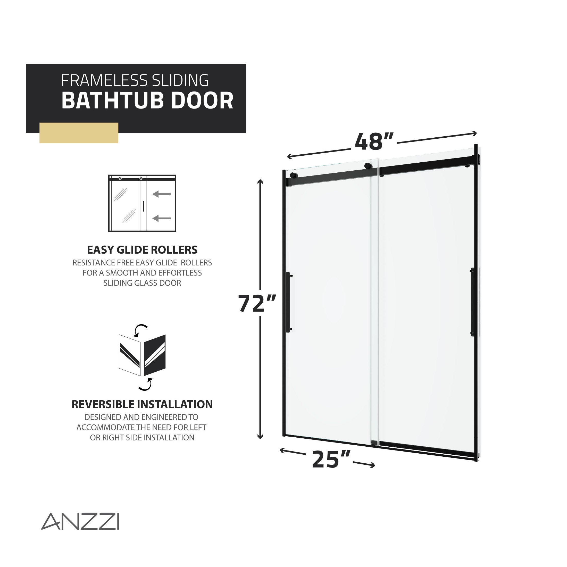 ANZZI Sliding Frameless Shower Door Stellar Series 76 in. H x 48 in. W Matte Black