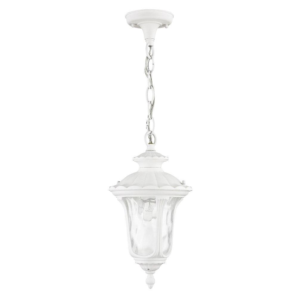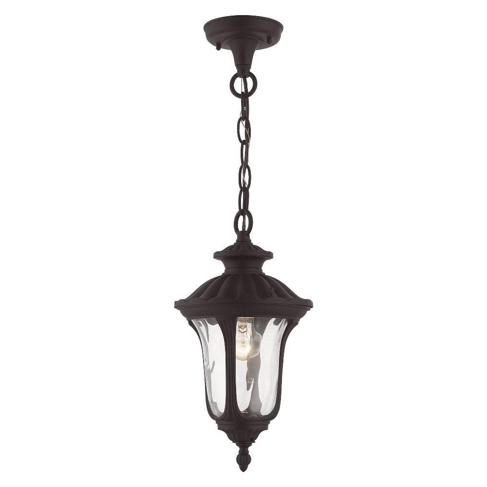 Livex Lighting-7849-07-Collection: Oxford, Material: Aluminum, Finish Color: Bronze, Width: 7.25″, Height: 14″, Chain Length: 36″, Lamping Type: Incandescent, Number Of Bulbs: 1, Wattage: 100 Watts, Moisture Rating: Damp Rated, Desc: From the Oxford outdoor lantern collection, this traditional design will add curb appeal to any home. It features a handsome, antique-style hanging plate and decorative arm. Clear water glass cast an appealing light and lends to its vintage charm. Wall plate, arm and other details are all in a bronze finish. Canopy Included: Yes / Shade Included: Yes / Canopy Diameter: 4.25. ,-Oxford – 1 Light Outdoor Pendant Lantern in Traditional Style – 7.25 Inches wide by 14 Inches high-Bronze Finish