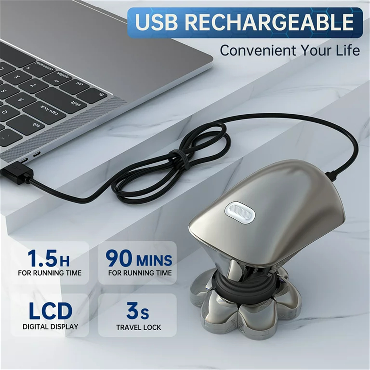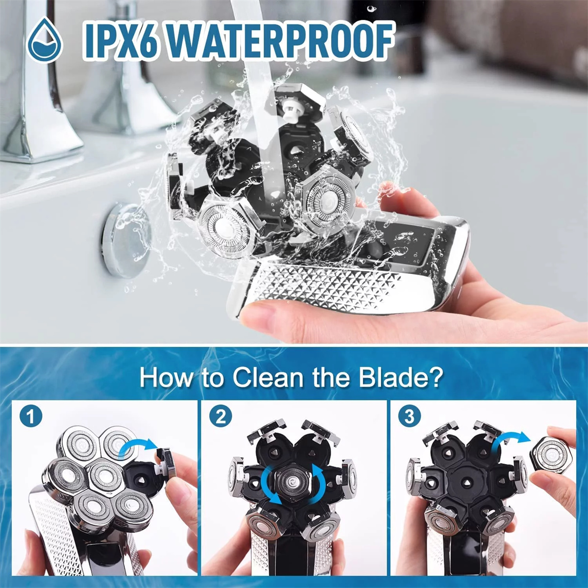 Say goodbye to uneven shaves and hello to a clean, fresh look with VANELC Head Shaver. Trust us to provide you with the ultimate grooming experience. HIGHLIGTHS: MAGNETIC ATTACHMENT DESIGN: The magnetic attachment design with 7 blade heads allows for easy removal and cleaning. With just a simple step, you can effortlessly detach the blade heads, making cleaning a breeze. This design ensures hygiene and cleanliness, providing you with a sanitary shaving experience every time. FLOATING BLADE DESIGN: We have incorporated a floating blade design to better conform to the contours of your skin. Unlike traditional products, our floating blade technology adapts to the facial contours and curves, delivering a comfortable and precise shaving experience. This means smoother movements, reduced discomfort, and minimized friction, resulting in a closer and more accurate shave. DOUBLE BLADE & PROTECTIVE NET – Bald head shaver for men uses double-layer durable blade to accurately capture long and short hairs, which are precise, sharp and safe. The double net provides protection and reduces irritation. The intelligent induction system effectively prevents hair pinching. WET & DRY SHAVER – Our head and face electric razor shaver uses water resistance technology, allowing you to shave in the shower under running water. Wet shave with cream, gel, or foam or dry shave. No matter what, it allows you a comfortable dry shave or a refreshing wet shave. Detachable and washable head makes you easy to clean it. USB CHARGING & LED DISPLAY – 7D head shaver supports various USB devices for charging, 2 hours of fast charging can provide 90 minutes of working time. The bald head shaver for men with LED Display which you could easily check the power percentage. Low battery reminder, water washing reminder more intelligent. 100% SATISFACTION GUARANTEE – Professional 5 in 1 Grooming Kit, Different types of head razor shaver accessories meet all your personal facial shaving needs for beard and hair. At VANELC, we provide 1 year warranty and 24/7 Service. If you encounter any problems during use 7D electric head shaver, please feel free to contact us. Including a Variety of Accessories: Hair clipper Hair clipper comb (3/5/7mm) Nose hair trimmer Facial cleaning brush and massager Cleaning brush USB charging cable