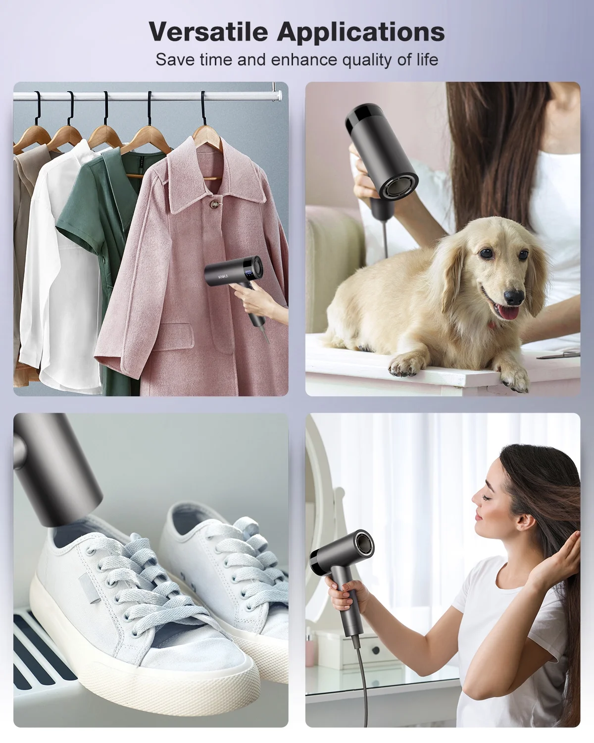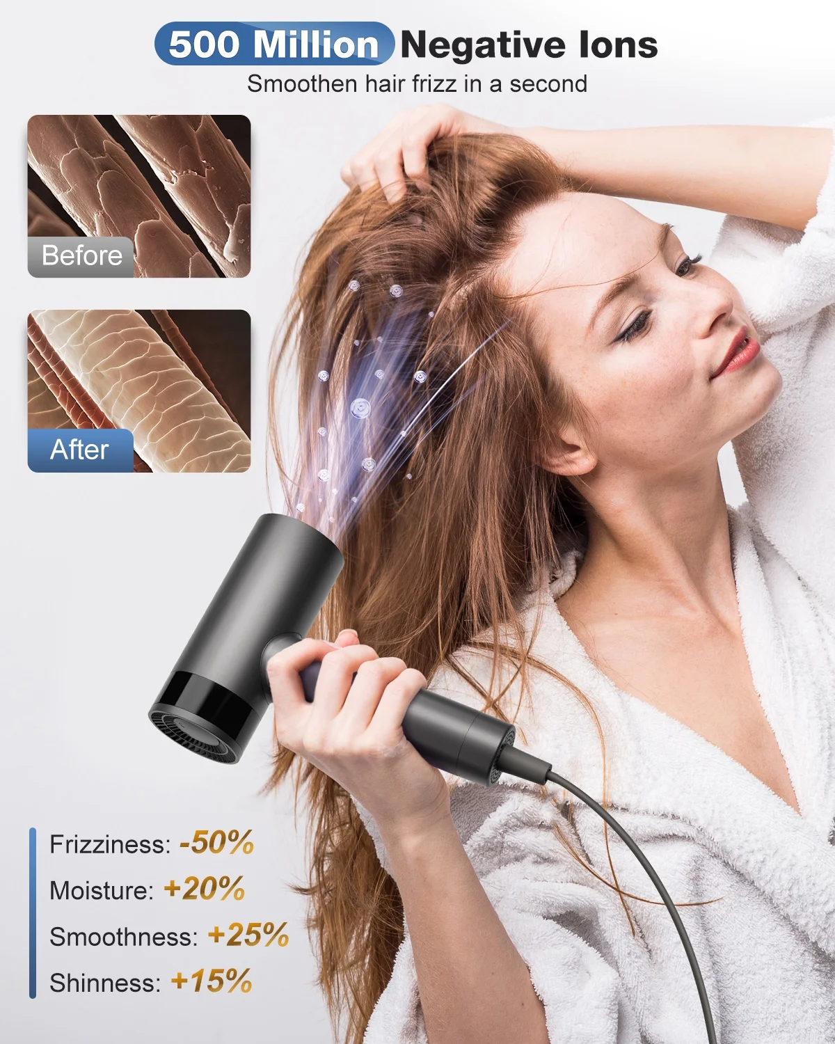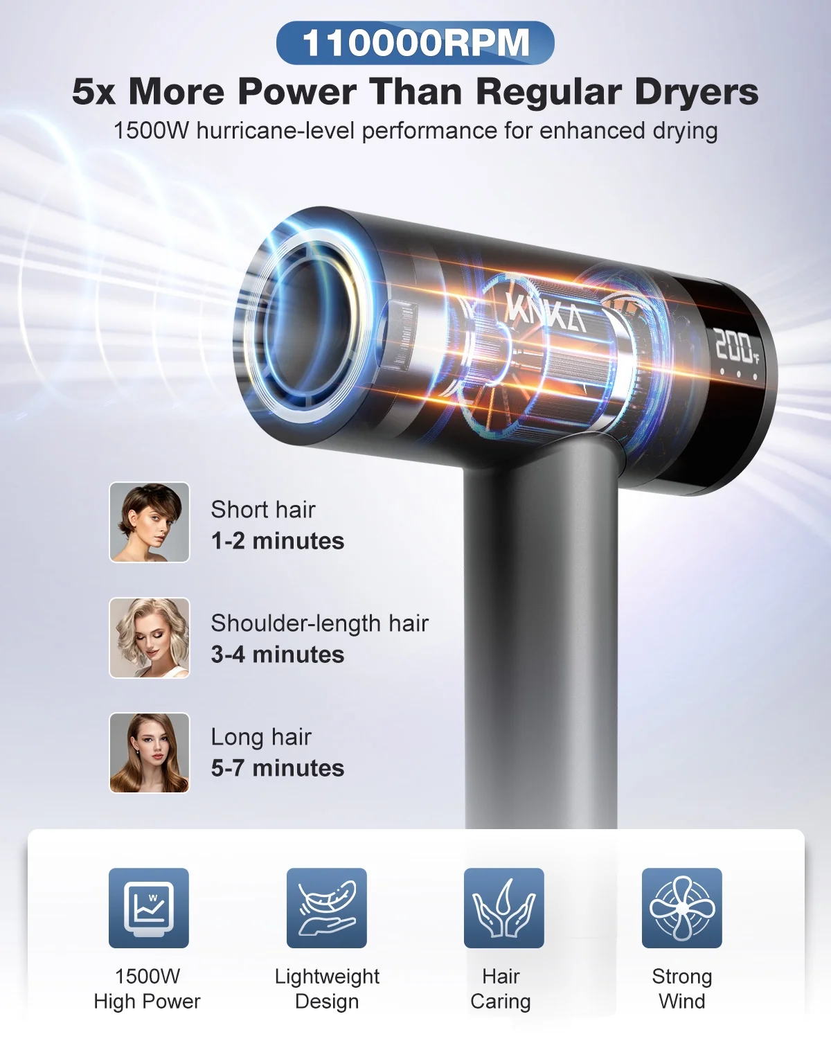 We upgraded our blow dryer to Standrad FCC & UL approved US ALCI Safety Plug to better protect you during hair drying. The travel hair dryer equipped with a 110,000RPM motor speed, it generates a high-speed, stable airflow for rapid drying.💎 Hand-held lightweight around 2lb, reducing the burden on your shoulder when using, just enjoy your hair care!The overheating safety protection feature makes our portable hair dryer safer and more reliable, making it suitable for both the elderly and young people to enjoy a professional salon experience at home. 7MAGIC High speed hair dryer with LED Display that it will help control the temperature better💎 What will you get? 1x Hair dryer 1x Concentrator nozzle Notification: The lightweight hair dryer comes with a 360-day warranty and 24-hour customer service, ensuring high-quality product support for every customer.