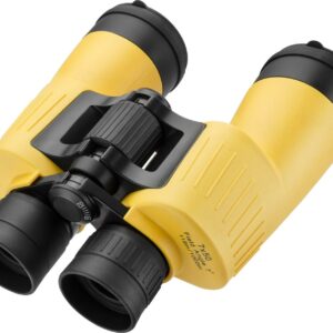 The 7×50 Floatmaster Binoculars from Barska are the perfect optical choice for boaters and water enthusiasts alike. These Floatmaster Binoculars offer complete waterproof protection and are completely buoyant if dropped in the water. Mariners of all kinds will greatly appreciate the benefits of a comfortable grip and the added shock-resistance provided by the tactile rubber armoring. The 7×50 Floatmaster is a compact, easily manageable binocular that permits a steady image even under a bobbing ocean, lake or river conditions. These binoculars feature BAK-4 Porro prisms and fully multi-coated optics for maximizing light transmission and increasing image clarity. Features: 7x Magnification 50mm Objective Lens Floating Capability BAK-4 Porro Prisms Fully Multicoated Optics Large Center Focus Knob Waterproof/Fogproof Construction Yellow Rubber Armored Housing