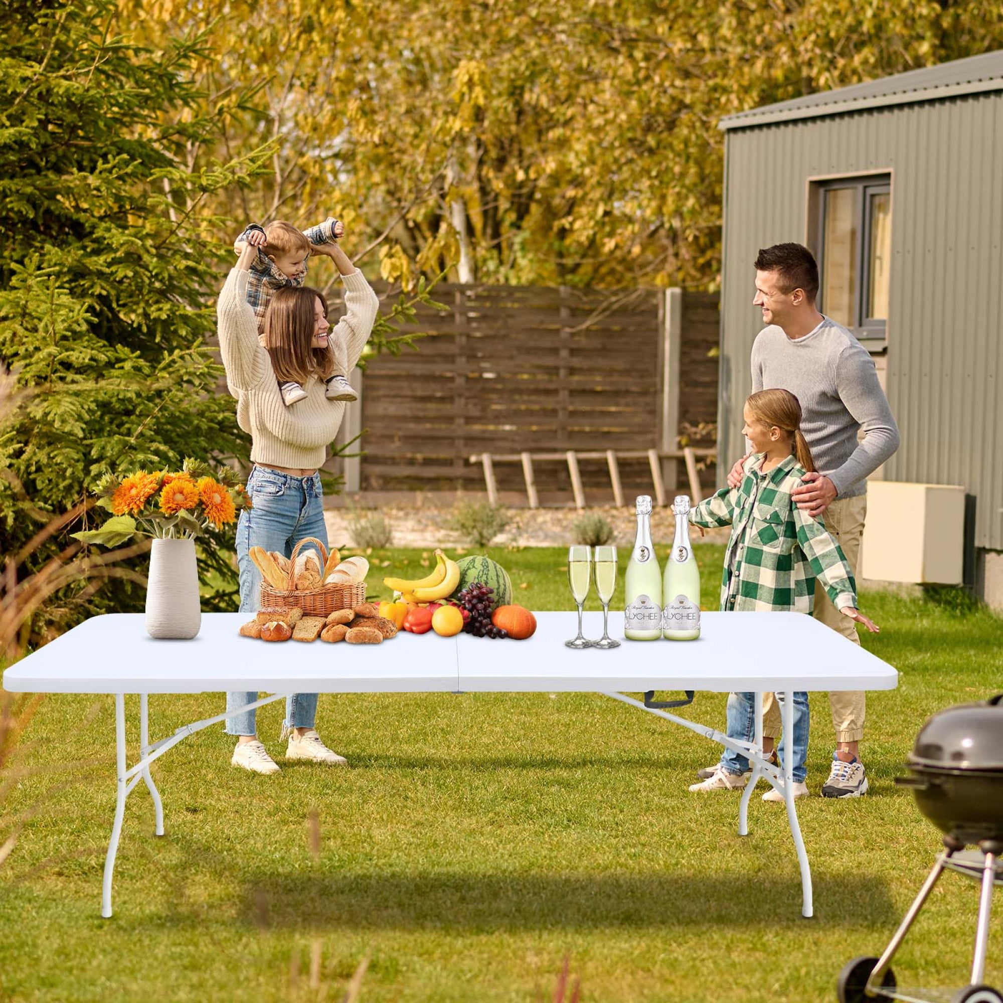 This folding tables are perfect for indoor and outdoor use. After folding, it takes up very little space and does not require assembly, which greatly simplifies your life. It is designed to have enough space to accommodate up to 8 people. You can use it as a desk, game table, dining table, picnic table, party table, outdoor folding table, etc. It is very suitable for parties, weddings, homes, offices and other occasions~
