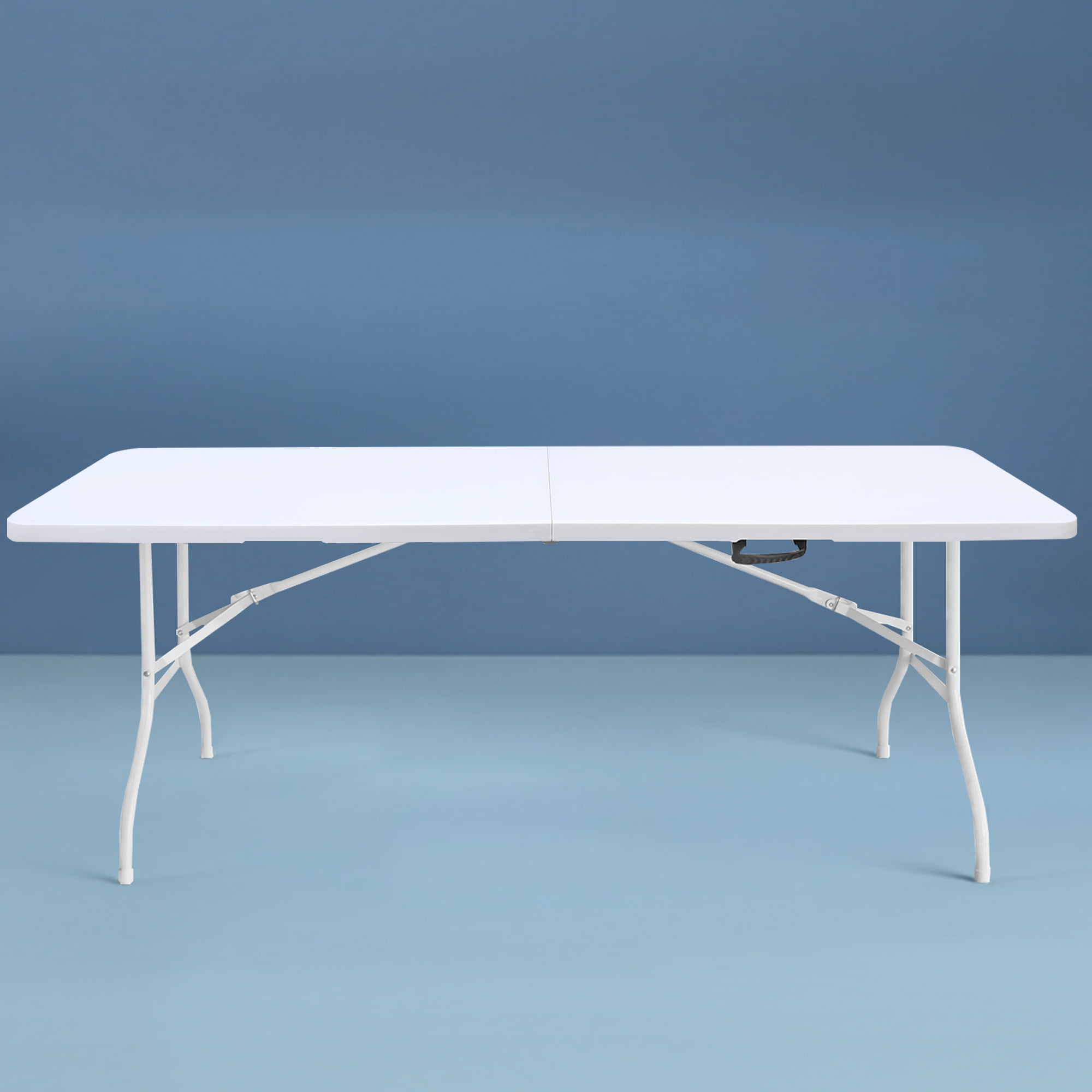 HEAVY-DUTY TABLE TOP: Place food. drinks, and much more on the strong, easy-to-clean table top with high-quality plastic. INDOOR/OUTDOOR USE: Versatile use makes it perfect as a dining or game table for outdoor cookouts or birthday parties, or as a servino or display table for indoor events. STURDY SUPPORT: Powder-coated steel legs, frame joint locks.and non-slip rubber feet help to keep the table in place during every event . PORTABLE: Foldable design includes a side lock and handle.making it easy to take on the ao or store away a compact space when not in use. OVERALL DIMENSIONS:243.8(L)x 76.2(W) x 72.3cm (H); Weight Capacity:135kgs Package dimensions:127 X82.8 X10.6 cm N.W./G.W.: weight: 18kg/20kg 8FT camping table