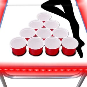 Party Pong Professional Beer Pong Tables are for everyone looking for an affordable, portable beer pong table. Anodized aluminum framing and legs make these tables the most durable beer pong tables on the market, capable of withstanding extreme temperatures, liquids and physical abuse. The Professional beer pong table conveniently folds into a 2 ft. x 2 ft. case making it portable and convenient to bring to any party, tailgate or event. Cup Holes for the game cups prevent cups from sliding and spilling. Color-Changing LED Glow Lights add an awesome lighting effect to your Party Pong Table. Easily visible in daylight and extra vibrant in the dark, these battery-powered LED glow light strips put the ‘Party’ in Party Pong beer pong tables.