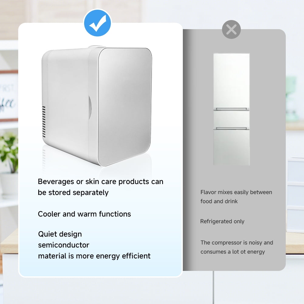 Multiple Application: Love to travel? Then you would love this mini fridge. The small desk fridge can be taken anywhere to store food, drinks, beer, beverages,snacks, breast milk, skincare products, and medications. It is ideal to use anywhere in your bedroom, office, dorm, dressing Table, boating, camping and so on. Small and compact size, but big capacity for you. Best gift for women and girls. Stylish & Compact Mini Fridge: Our little fridge is simple with smooth lines design. The compact size is perfect for keeping drinks and snacks within easy reach without taking up too much space, and the sleek, modern design blends well with your home decor. Drink cold water or soda water while playing computer games or working long hours is so pleased. Love the convenience of having cold drinks and snacks within arm’s reach. Portable Thermoelectric Refrigerator : 8L capacity that measures 11×10.4×7.5 in and it can hold 8 cans 12oz cola beer. Compact design with removable shelf is perfect for storing your essentials at home, at work, in a dorm, or even on the go, keep your desk tidy with the generous amount of storage space.Take This Mini fridge toghter,enjoy your trip. Home & Car Use: Includes 2 power cords, 1 AC and 1 DC. Two plugs are included for both stndard wall outlets and 12V cigarette lighters in vehicles, so you can use it both at home and outside.And the convenient carry handle increases the versatility of our mini refrigerator. Please note: Make sure to run the cooler/heater only when the engine is on, otherwise there will be a risk of draining the battery. Cool to Warm: Cool up to 50℉ (5℃-10℃) below environment; warms up to 150℉ (60℃-65℃). There is a hot/cold switch in the back. You can switch mini refrigerator for the bedroom to set cold or hot. Perfect for Little Snacks and Baby Bottles! Reminder: In order not to damage the life of the mini fridge for bedroom, we recommend to wait at least 15 minutes in between when switching the hot/cold mode.