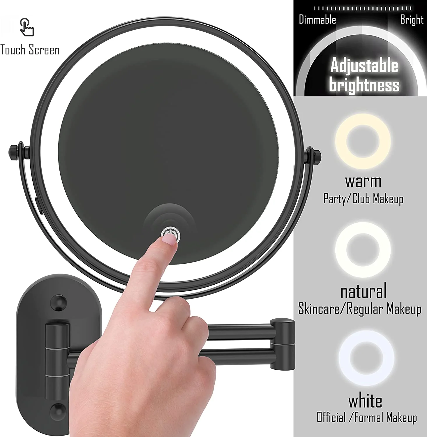 The Fixsen LED Rechargeable Touch Control Wall-Mounted Swivel Makeup Mirror also as a shaving mirror is designed for performance the beauty of yours. The LED provides 3 color lighting mode, white, natural and warm light. You can easily turn on/off the light of this makeup mirror and change colors by touching the panel. Touch it shortly for on/off/color changes. Long press to adjust brightness from 10% to 100%. This wall-mounted cosmetic mirror has a built-in rechargeable lithium battery, which can be used wirelessly after charging, keeping the wall neat and beautiful. The double-sided 1X/10X switching makeup mirror meets various daily needs, such as contact lens wearing, eyebrow trimming, makeup and shaving, etc. The matte black surface spray paint provides a smooth touch and keeps the surface clean in daily use. 360-degree rotation and maximum 12 inch extension make it suitable for almost every angle you need. Because of its enduring style design and excellent quality, this product certainly is a most suitable and worthy choice for both post- modern and classic home decoration style. Fit for bedroom dresser and bathroom vanity. Also can be a wonderful gift choice.