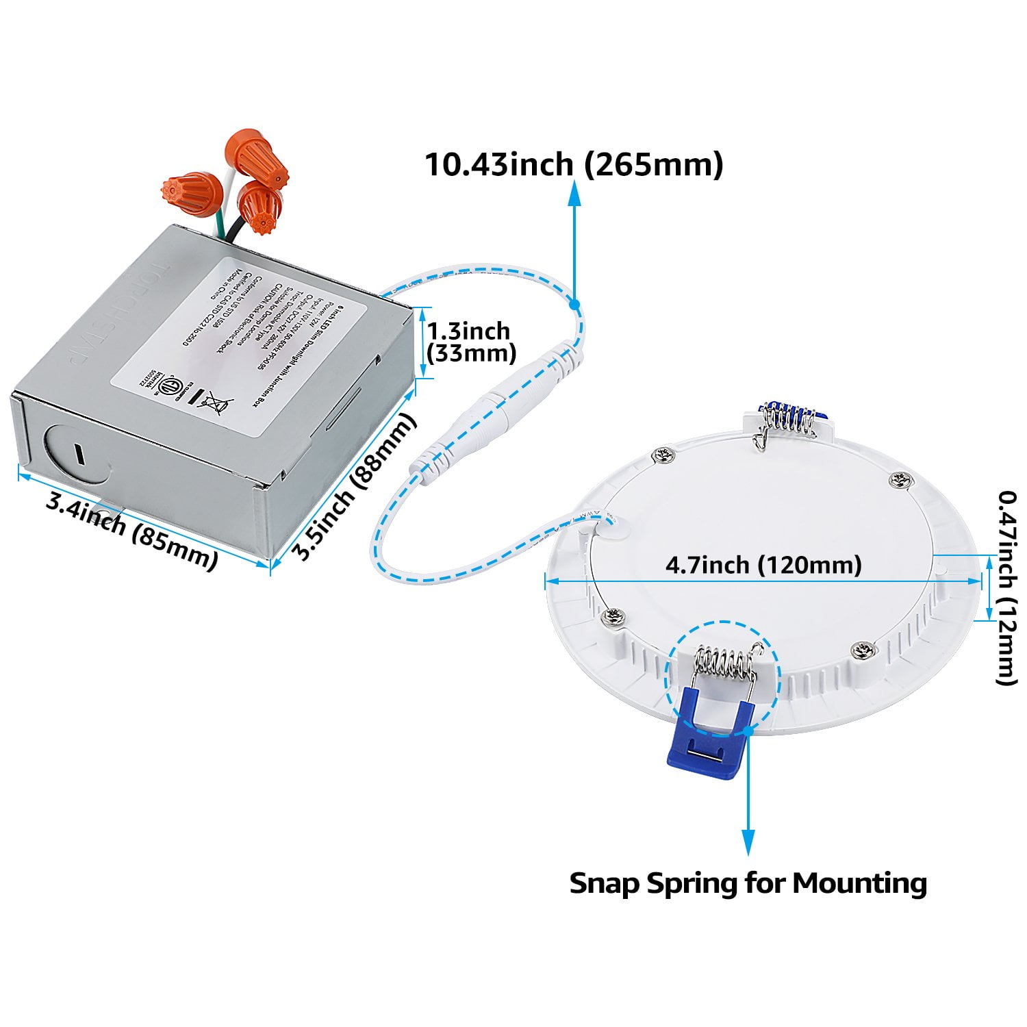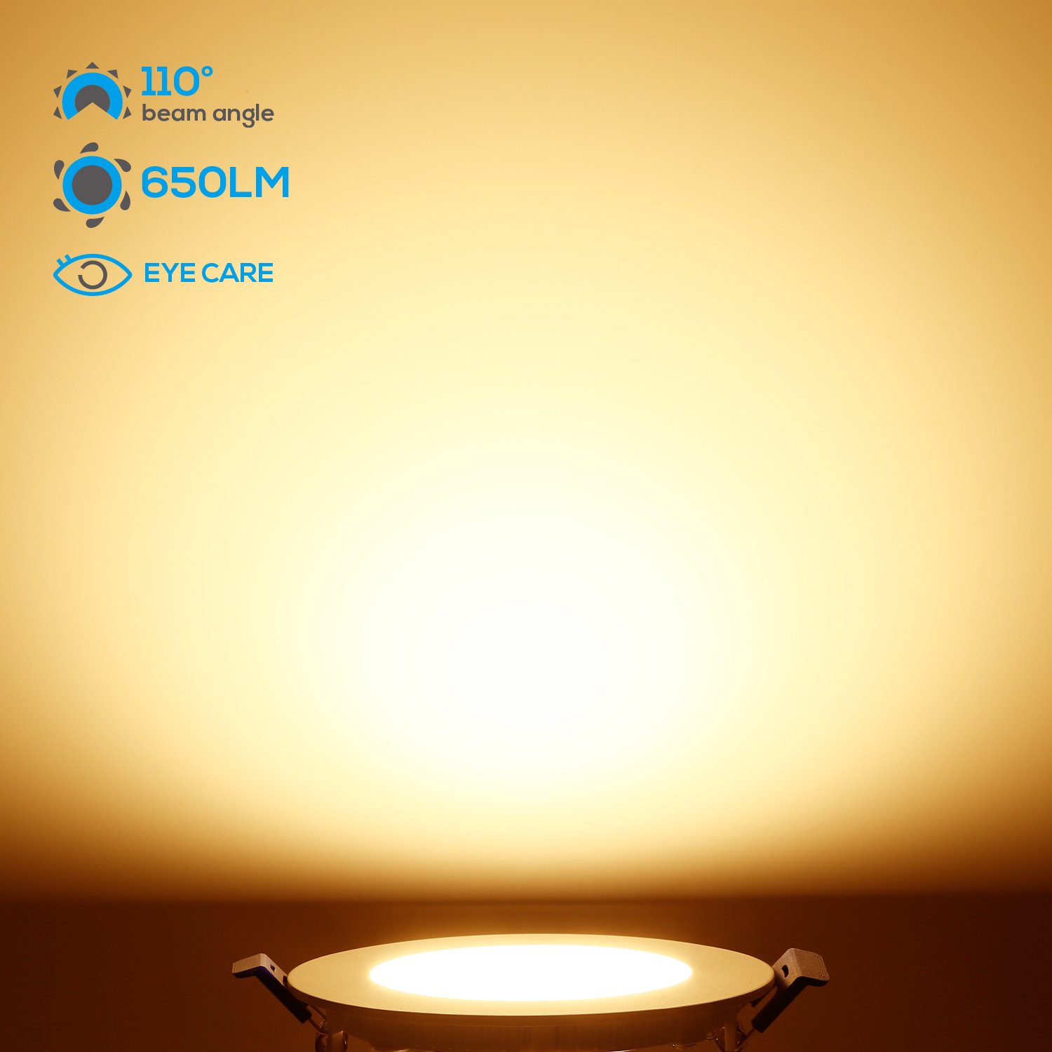 New Design This recessed ultra-thin panel LED downlight is perfect for ceilings that are too narrow to fit standard LED flat-top lights or narrow ceilings that are not suitable for housing cans. With only a 2″ clearance required, this bright light supports remodeling, or new building fixtures. Save Energy With an anti-glare and anti-scratch frosted LED lens, this Energy Star-certified ultra-thin ceiling recessed light only needs 10 watts to provide 650lm of brightness, equivalent to an 80-watt incandescent lamp. Dimmable& Easy to Use Easy installation is done by simply connecting the j-box to the light using male/female cables and mounting it to the ceiling using spring clips. IC rating ensures insulation and avoids accidental fire. Compatible with most dimmers on the market, this slim LED downlight dims 100%-5% smooth dimming, you can adjust the brightness yourself according to your needs and preferences, perfect for doorways, hallways, closets, basements, kitchens and more. Note The spring clips can fix the light onto a max 0.59inch thick ceiling. Warranty It comes with a 3-year warranty to ensure your rights and interests as a consumer. Specifications Wattage: 10W Voltage: 100-130V Equivalent: 80W Luminous flux: 650lm CRI>80 Lifespan: 36,000hrs Beam angle: 110° CCT: 2700K soft white Dimmable: Yes Dimming range: 5%-100% Waterproof rating: damp location Material: Aluminum & PC