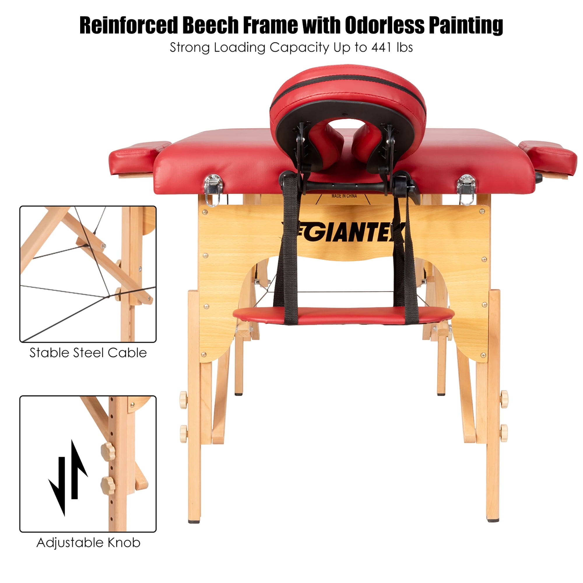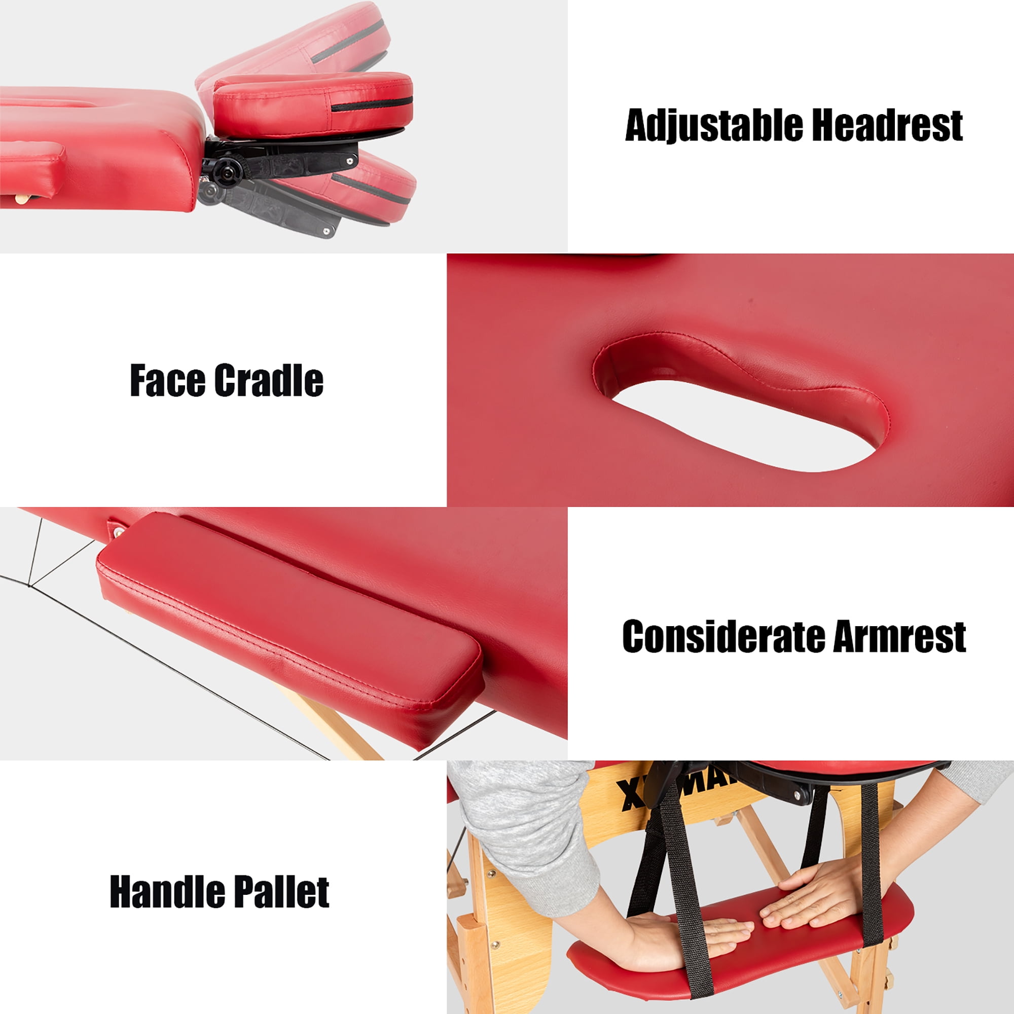 84”L Portable Massage Table Adjustable Facial Spa Bed Tattoo w/ Carry Case Red