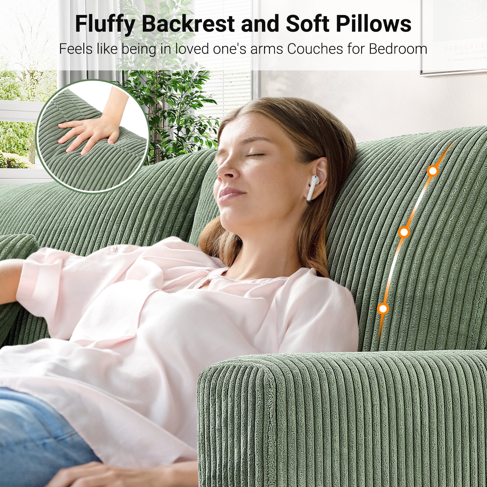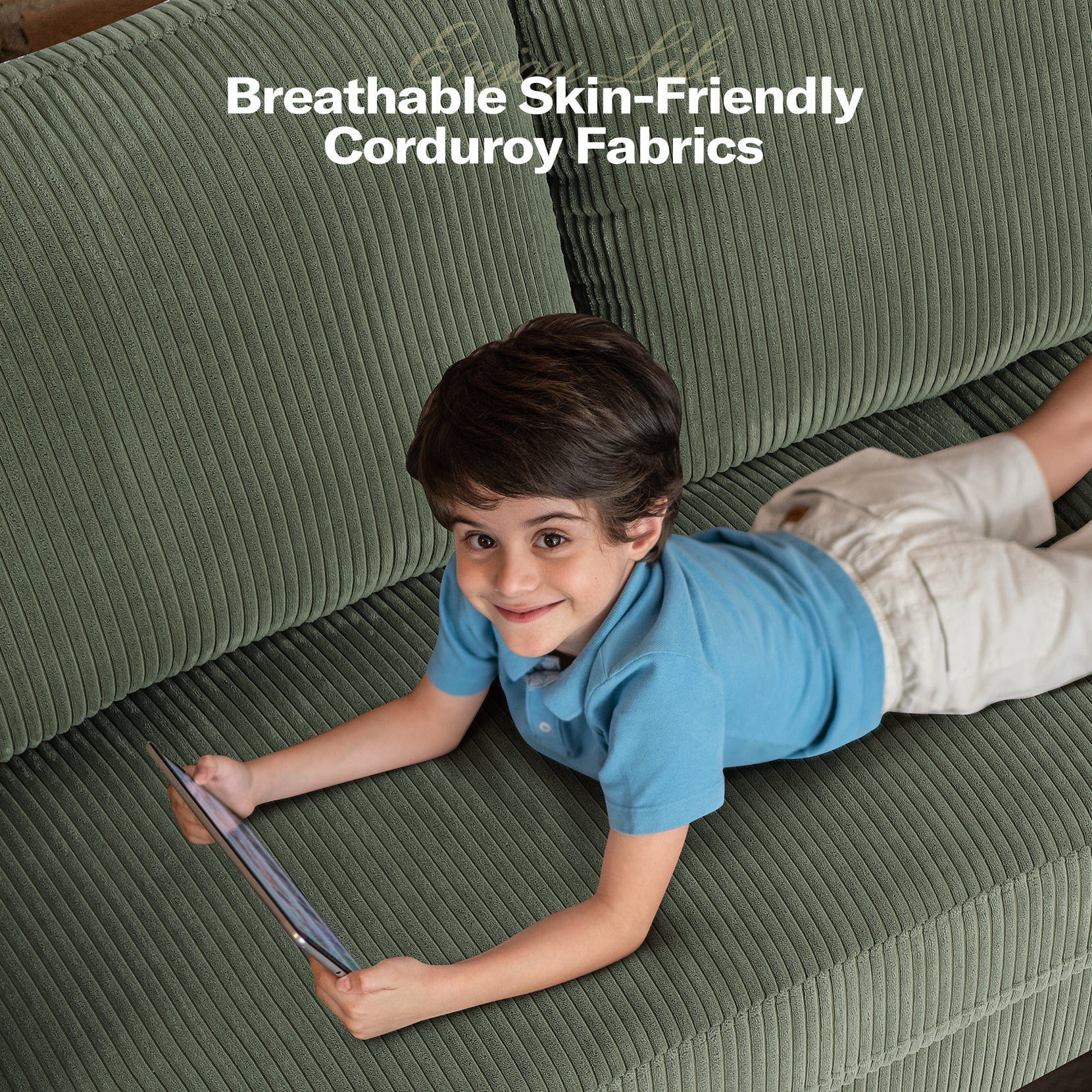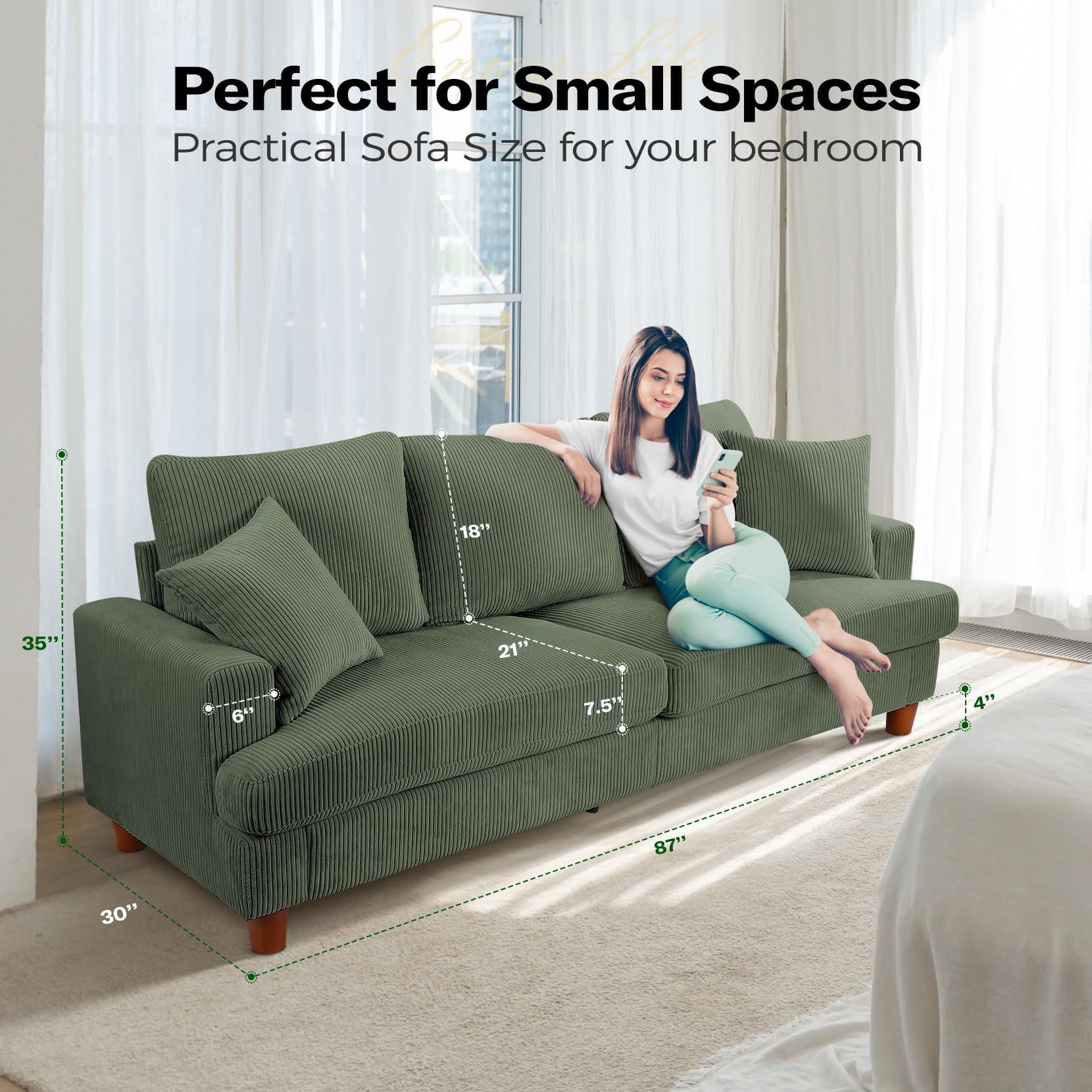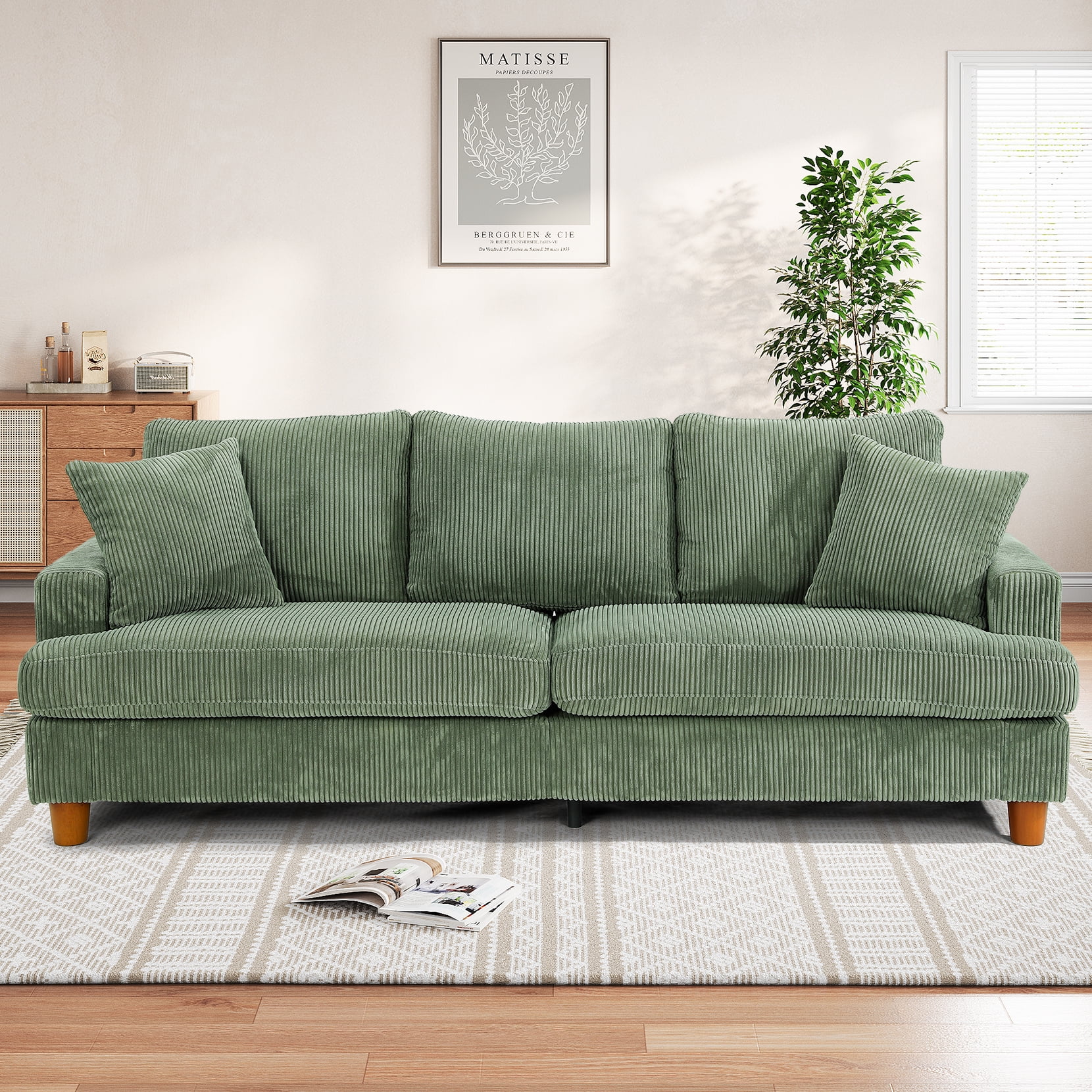 87″ Corduroy Sofa,3 Seater Sofa with Extra Deep Seats,Neche Comfy Upholstered Couch for Living Room,2 Pillows,Green
