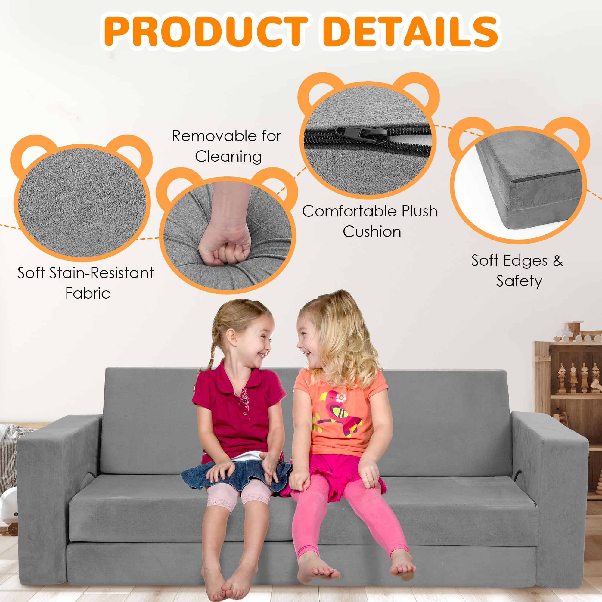 [Let Kids Couch Inflate 3-5 Days] When the package is opened, this kids sofa/couch will be deformed and thin due to compression packaging. First open all the zippers and wait for 5 days, then the modular kids couch will be restored to its original shape! If you want to regain the thickness more quickly, please use a steamer, to bring the foam back to its actual height and remove sectional wrinkles from the cover. [Multifunctional Kids Play Couch] In addition to a comfortable kids sofa, it can also use the imagination of children, easily converted into a table, sleeper bed, puppet show frame, fort frame, obstacle course, ball pool or hiding place. What else can be turned into? Let your little ones explore! Arrives are already assembled and ready to use. Kids convertible sofa will bring more FUN. [Unleash Imagination & Creativity] Enjoy the kid couch sofa converting different functions. Large space design, the toddler couch will be a fun explorer sofa for kids to play games, read, watch TV, rest, or sleep. Meanwhile, this kids play couch is a decorative modular sofa for playrooms, bedrooms, children’s rooms, nurseries, etc. Also it is perfect for birthday gifts, Christmas gifts and baby shower gifts. [Soft and Durable] Upholstery-grade, sturdy foam can withstand adventurous play activities. The sofa’s foam stands up to years of play, providing a soft, low-impact surface for kids to jump, climb and fall on, with no harmful hard edges or sharp corners for them to bump into! Kids explorer sofa is easy to set up and reconfigure, allowing hours of play and helping to stimulate and improve children’s motor skills and coordination.